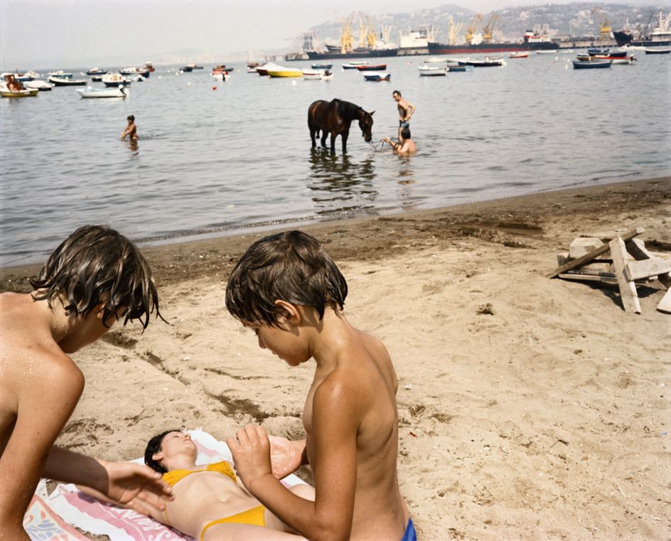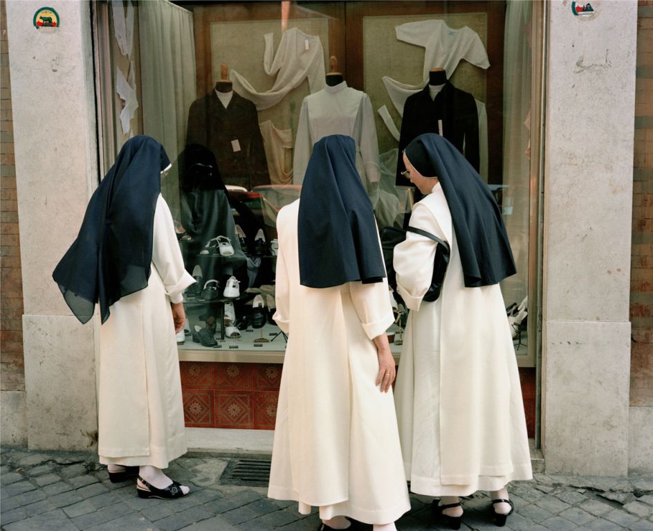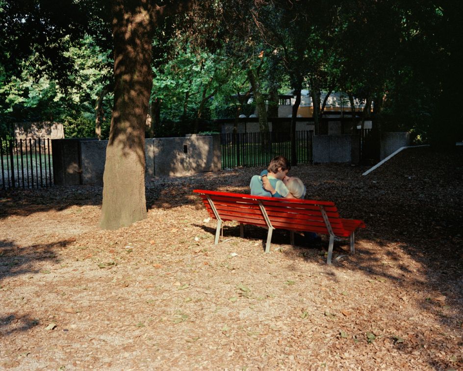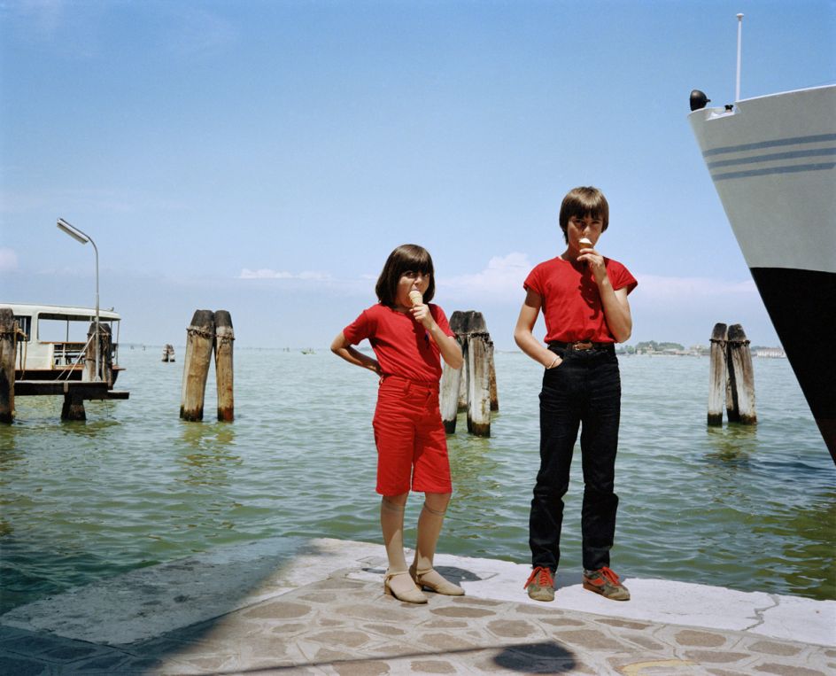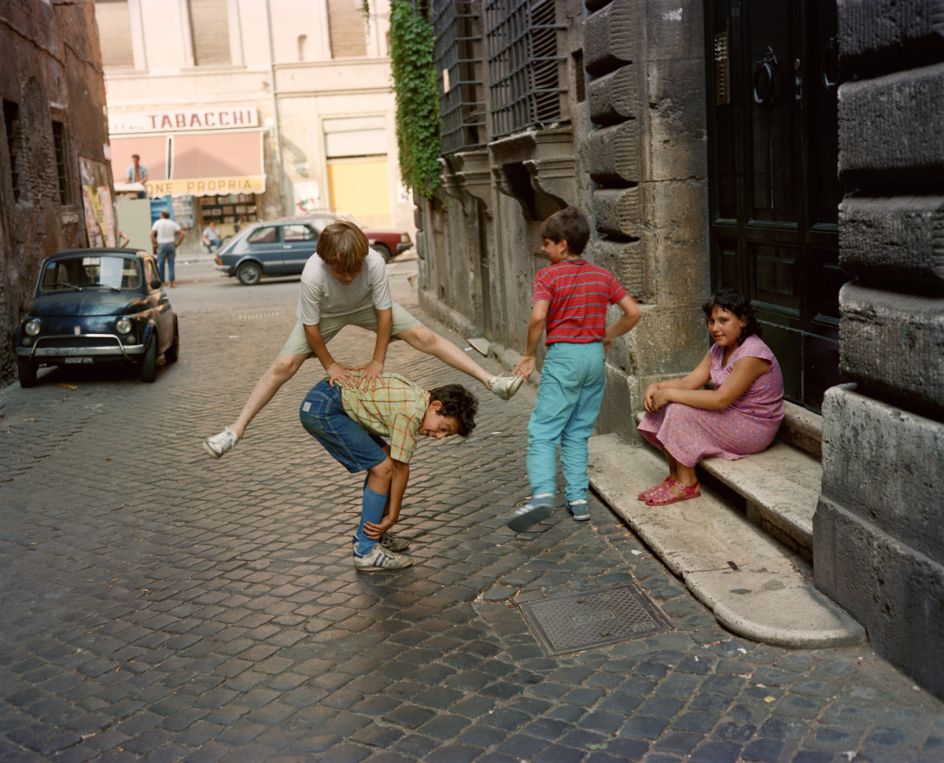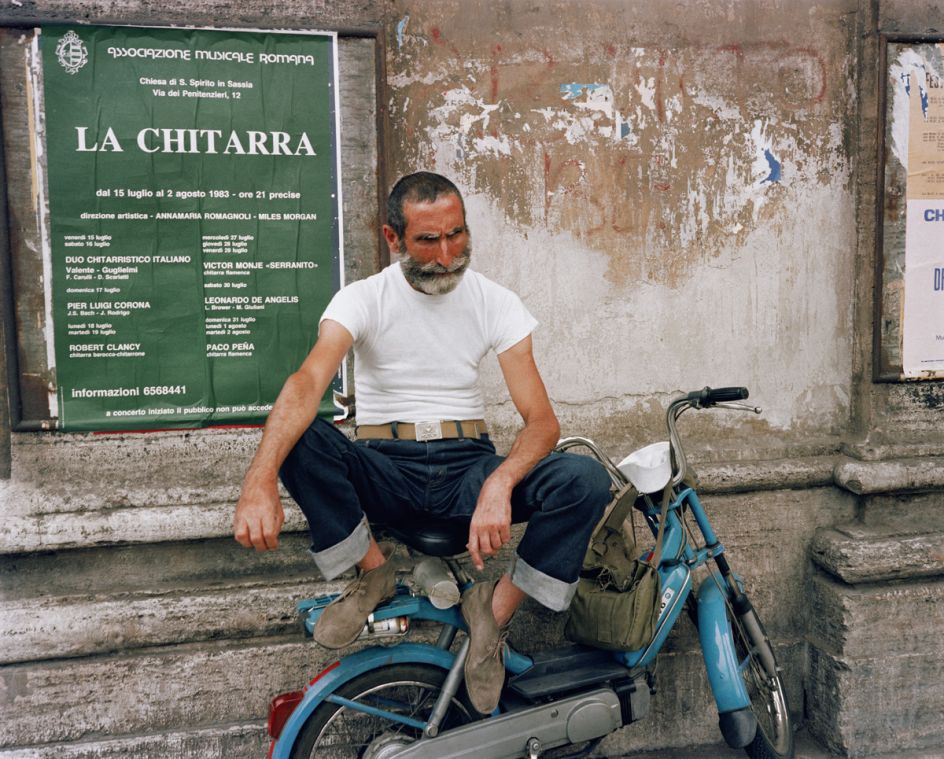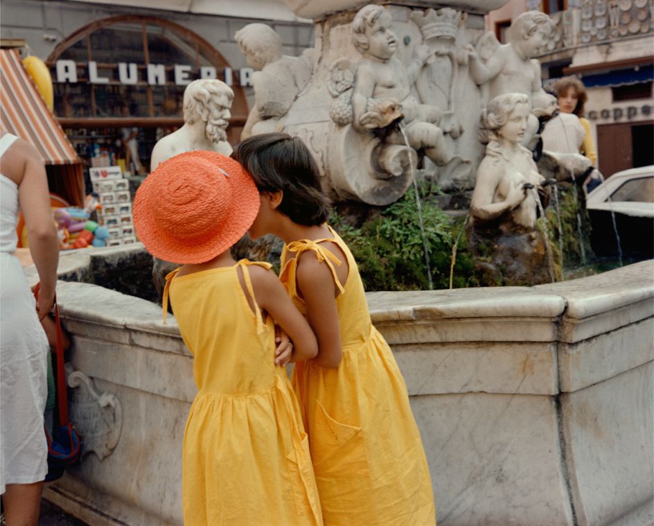 Characteristic of his imagery is a candid intimacy that combines humour and spontaneity, which makes us long for an Italy that maybe only once was. Brilliant blues, reds, and yellows engulf the baroque posturing and gestures of strangers and ordinary people who become fond archetypical caricatures. Traub’s friend and guide, the late photographer Luigi Ghirri, said of the imagery, "You see our foibles, strip us bare, make love through the camera, and then venerate us."