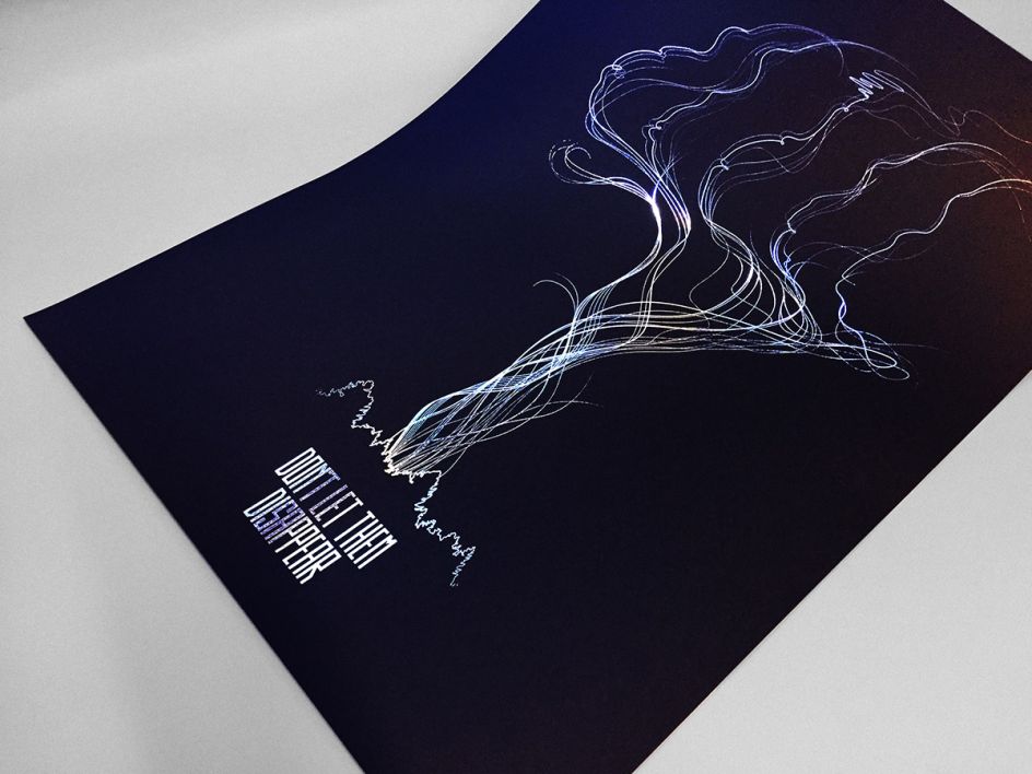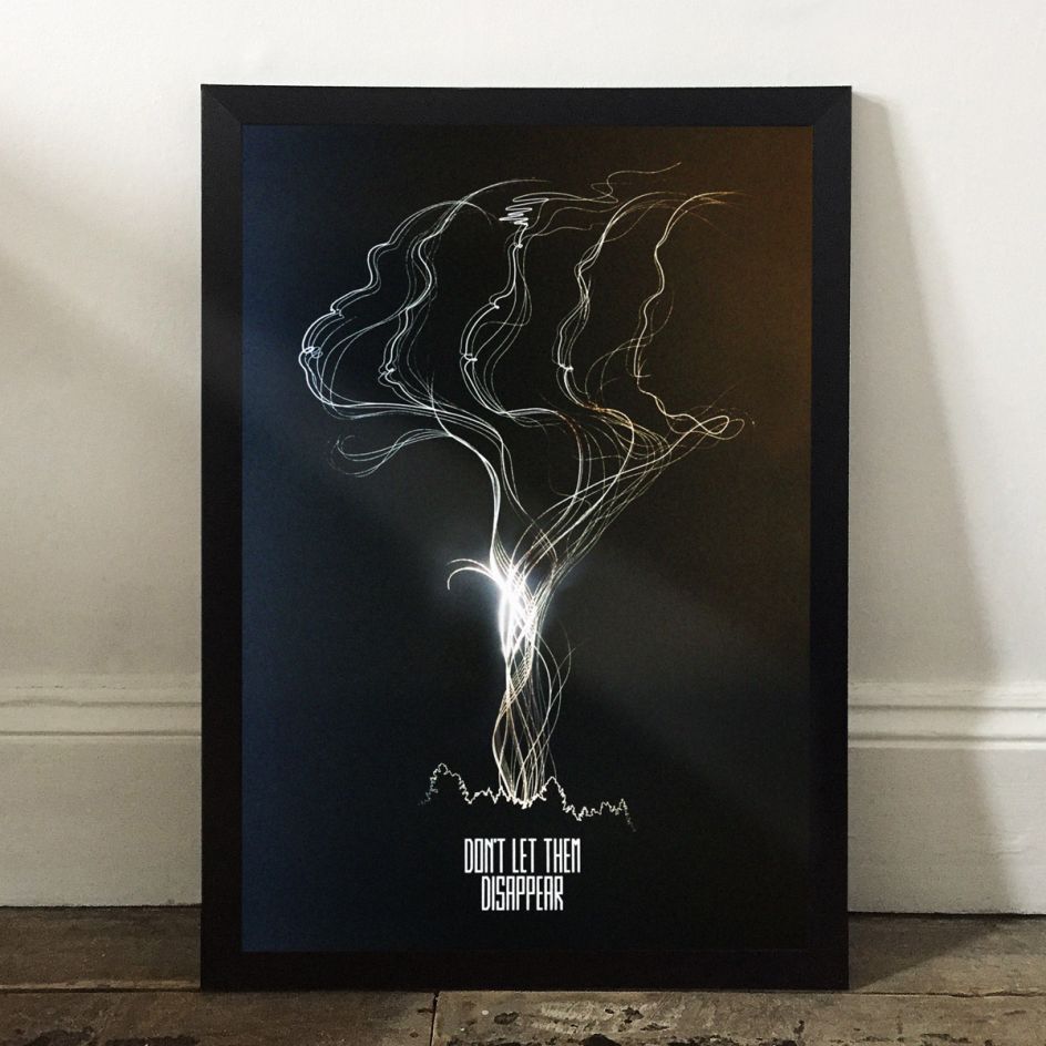 He also created an animation representing one of the most compelling characteristics of smoke - the way it moves, and, inspired by the elongated form of trees, Mark came up with a condensed typestyle for the key campaign message: Don’t Let Them Disappear.