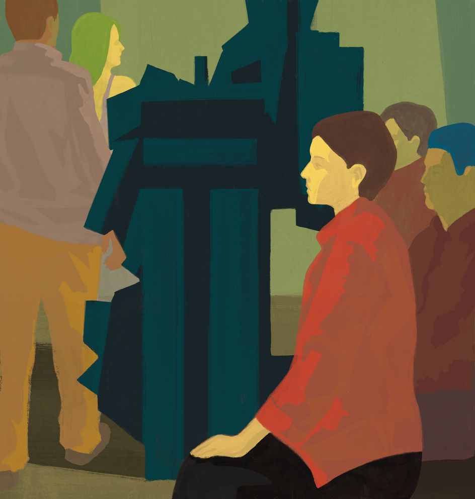 Influenced by artists such as Hopper, Lautrec, and Beckmann, the figures in his images experience a wide range of emotions. His most recent series explores situations you might find yourself in throughout the art world, including everything from art gallery conversations to museum visits and dealing with art collectors.