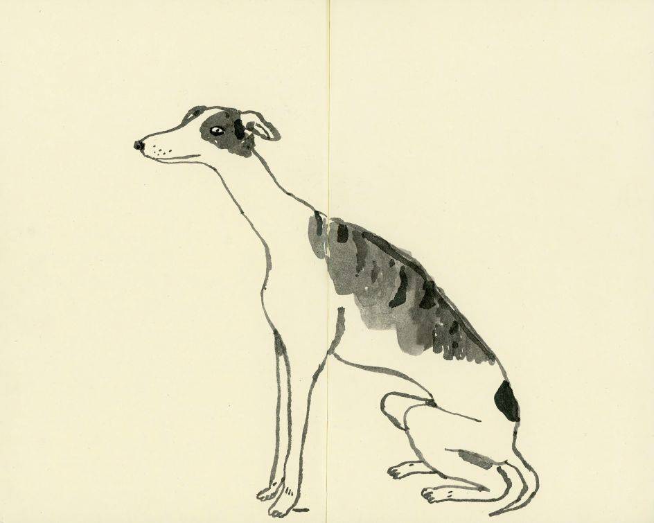 Despite all the different shapes and sizes that they come in, Tom finds dogs one of the easiest things to draw. Particular favourites include whippets or greyhounds, or "long dogs with a big snoot", as he calls them, as well as sausage dogs, "they're just funny, aren't they?" He adds: "Each one develops its own personality, and I want the viewer to smile when they look at them and notice similarities to a dog they know in real life."