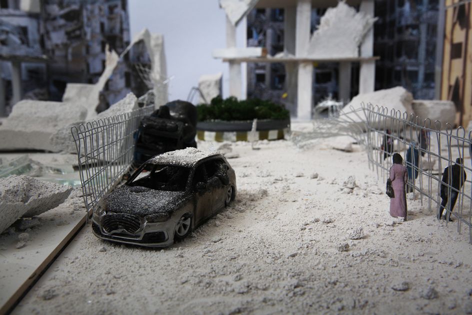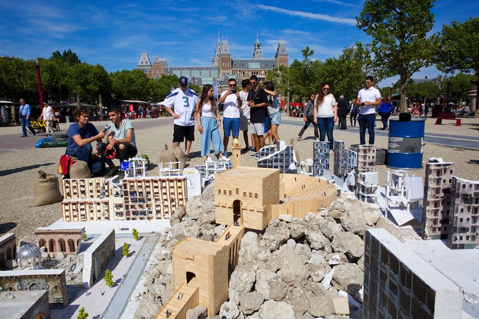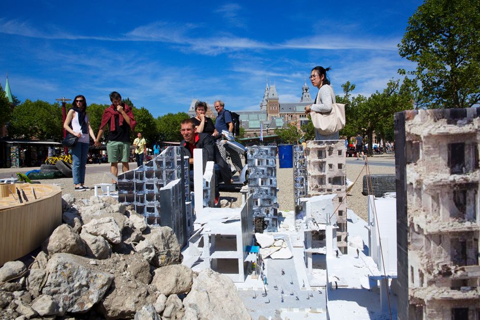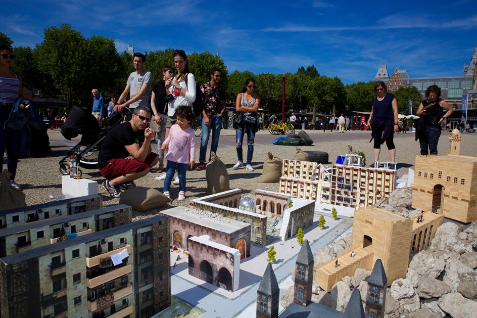 On 19 July, the day that fighting began in Aleppo in 2012, a totally destroyed miniature city appeared at the Museum Square in Amsterdam. The interactive pop-up installation, called Living Aleppo, was created by Saskia Stolz, founder of Power of Art House.