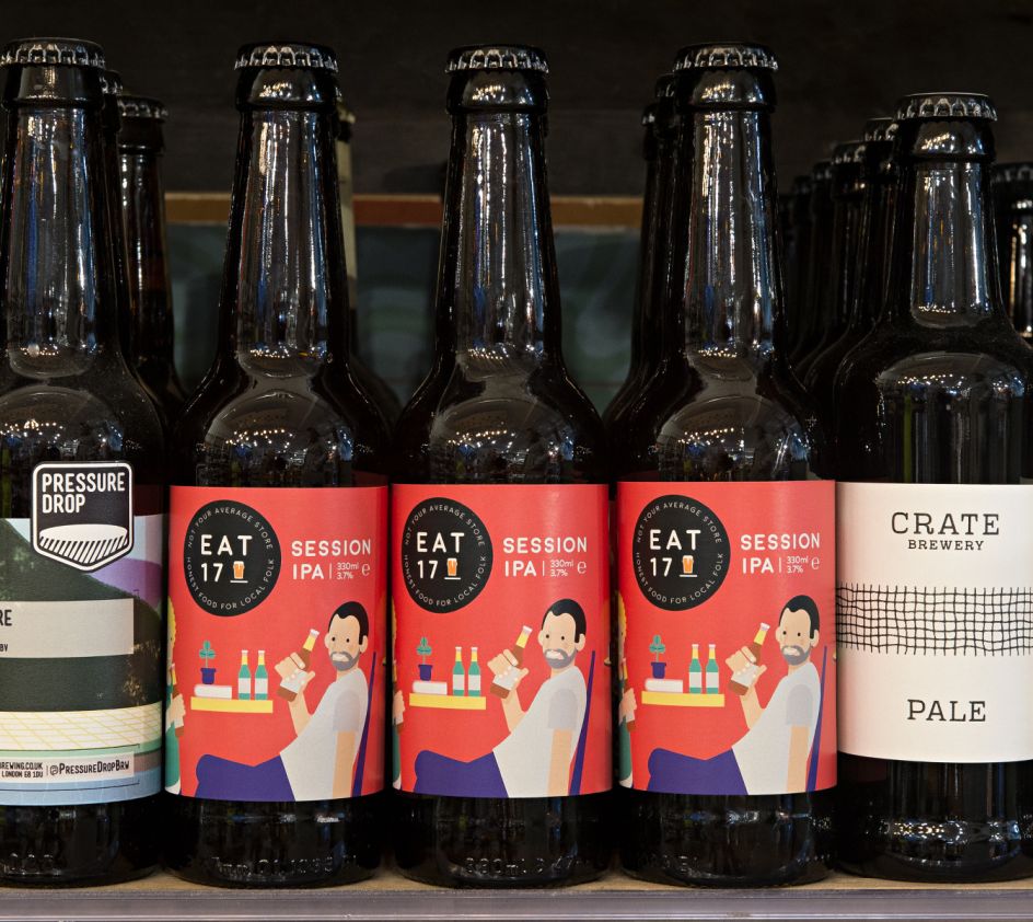 The design for Eat 17 Session IPA depicts two people effortlessly enjoying a beer in relaxing surroundings. The aim was to communicate the feeling of ‘sharing good beer with good people’ and reflect the welcoming, relaxed atmosphere that Eat 17 - which also has stores in Hackney and Whitstable - is known for.