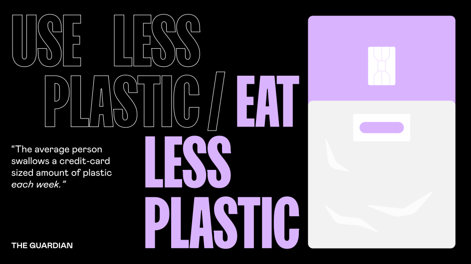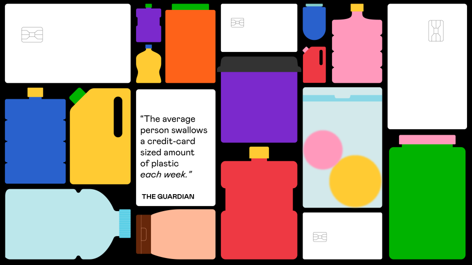 Created in just four days to coincide with Plastic Free July, the campaign is simple, gets straight to the point and has a colourful but arresting dark tone. "A challenge was making the credit card not seem as if it had been made from recycled plastic, and instead communicated what we consume from the broken down particles of other products such as plastic bags, bottles, and containers," says Cat.