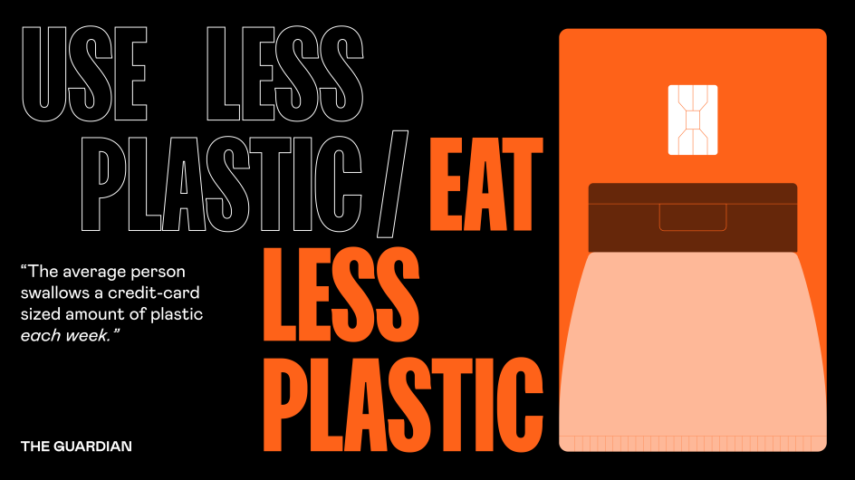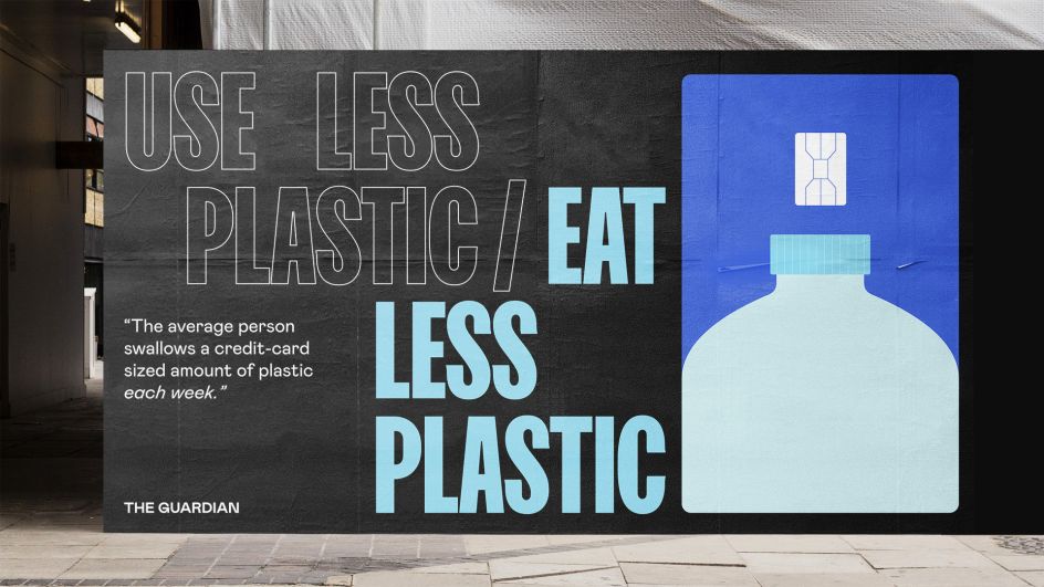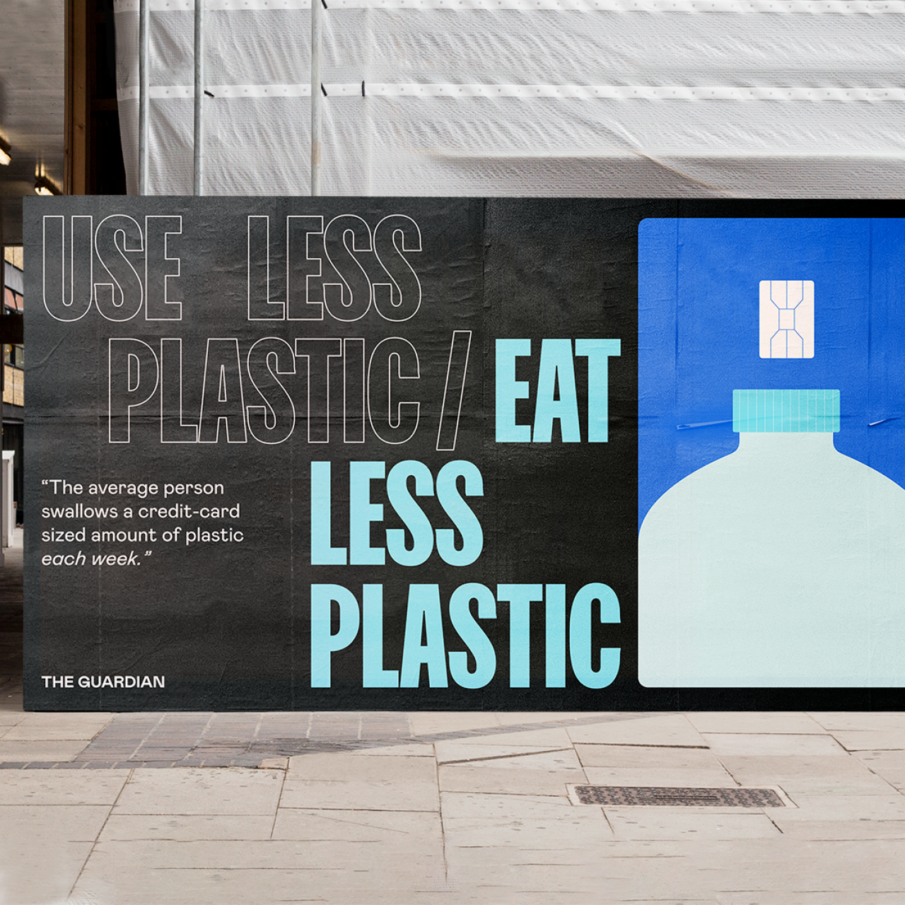 Simply named Use Less Plastic, Eat Less Plastic, it's part of a series of ongoing projects by the Lisbon-based studio, on "behalf of the planet" – as though Earth was a client. Speaking of the campaign, Creative Director Cat How says: "Living in Lisbon means we're in daily contact with the moods, majesty and misery of our ocean. The plastic washing up on our beaches is a very real and obvious threat. But there's an awful hidden danger we barely notice – the degraded plastic particles we're all ingesting through water, which have infiltrated the system."