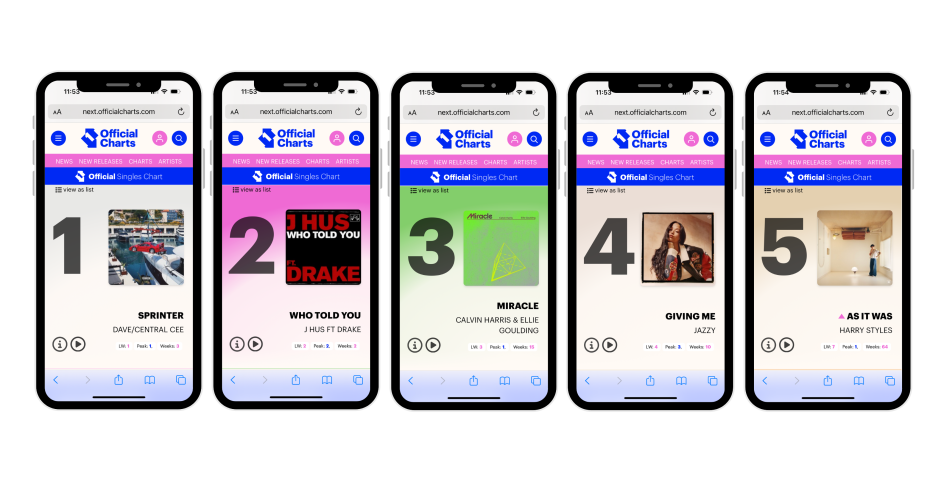 That's why, with a keen eye on Gen Z, they've just launched a new brand identity and digital consumer platform, OfficialCharts.com. The rebrand was undertaken by design agency Electric Mustard and features digital-first colours and a bolder, more impactful font.