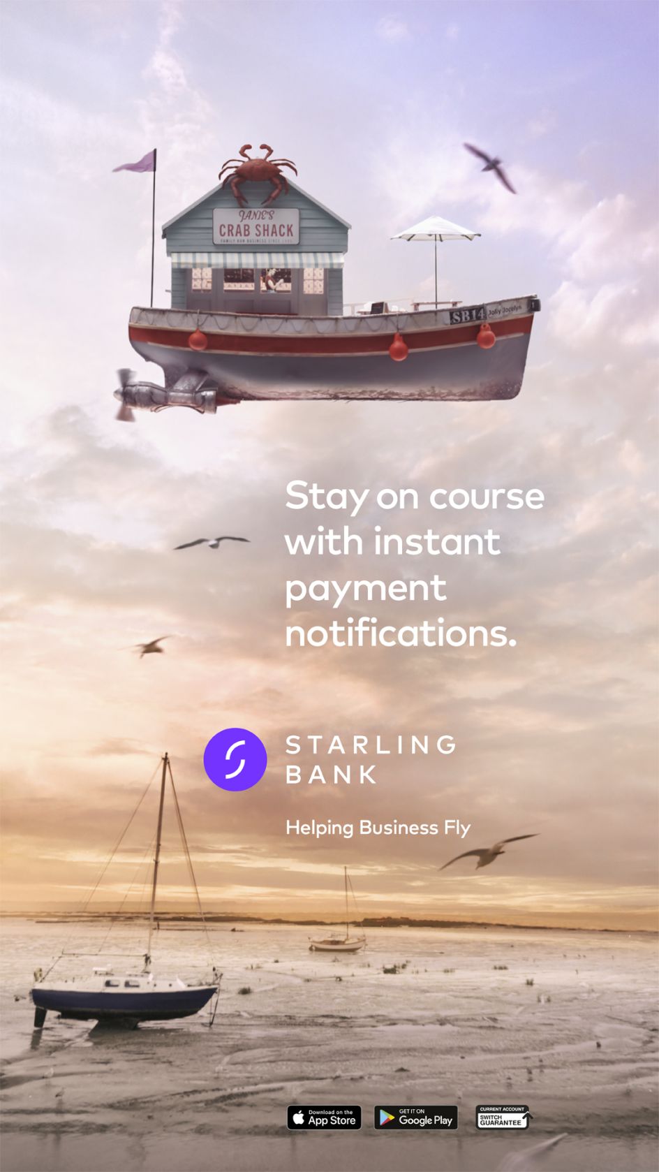 In the 60-second TV spot Helping Business Fly directed by Elliot Dear through Blinkink, we follow the journey of a small business owner, heroically setting off into the unknown. She waves goodbye to her supportive family before her shed/home office literally takes off with the help of the Starling app. Her adventure takes us on the relatable highs and lows of starting a new business finishing on breaking through the clouds and being in the clear with a 'murmuration' of other SMEs that have also made it.