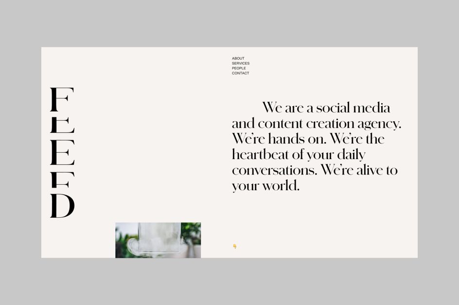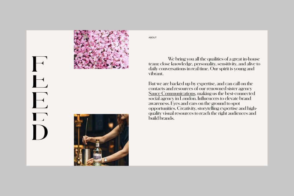 The website design consists of three 'feeds': one that's message led, one which presents case study images and finally, a feed that shows the animated version of the Feed logo.