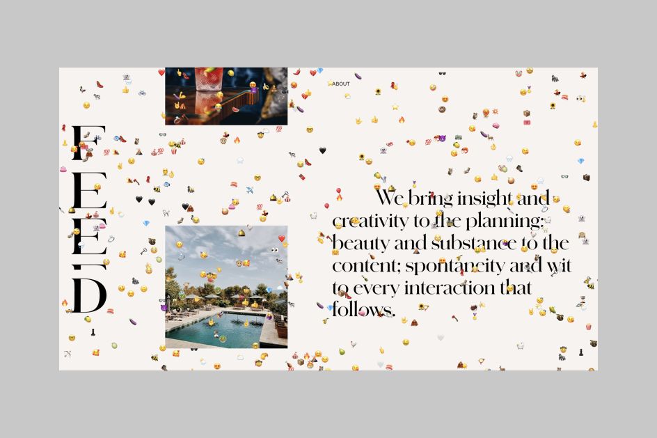 Much of the design work is informed by the aesthetics and behaviour of social media. For instance, when users roll over an image on the Feed website, an emoji appears relevant to that particular project. "And if left to its own devices, the website is gradually taken over by emojis," says DutchScot.