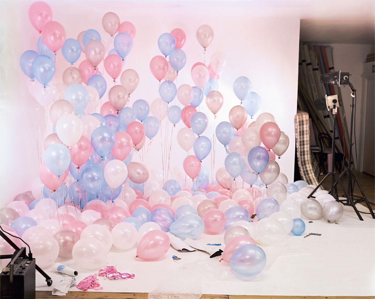 These are playgrounds of cheapish fantasy which are left like historical documents to the sex act. At first they have the appearance of a show-home in questionable taste. The colours are vivid and the structure at once basic and commercial looking. Then you look again and see the clues... a bottle of lubricant, a dildo, lights at the edge of the frame, glimpses of the studio beyond. It slowly becomes apparent that these are fantasy landscapes, rude pictures without the nudity.