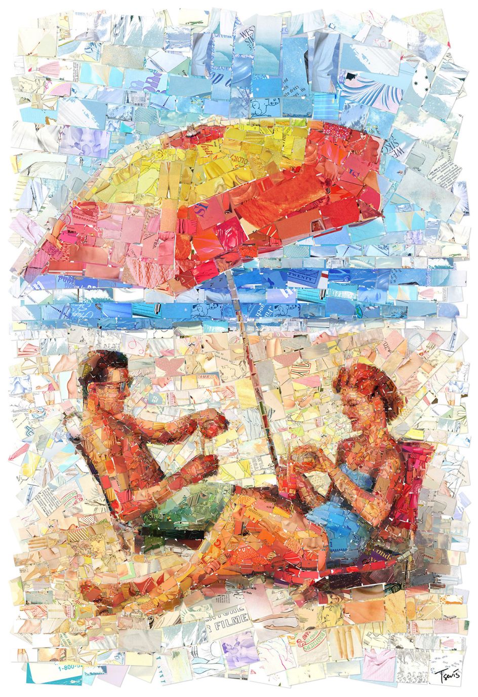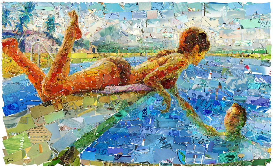 Were the summers of yesteryear more glorious than the ones we enjoy today? That's the interesting question posed by Greek artist Charis Tsevis who loves to tear up vintage magazines and create nostalgic mosaics of summery scenes.