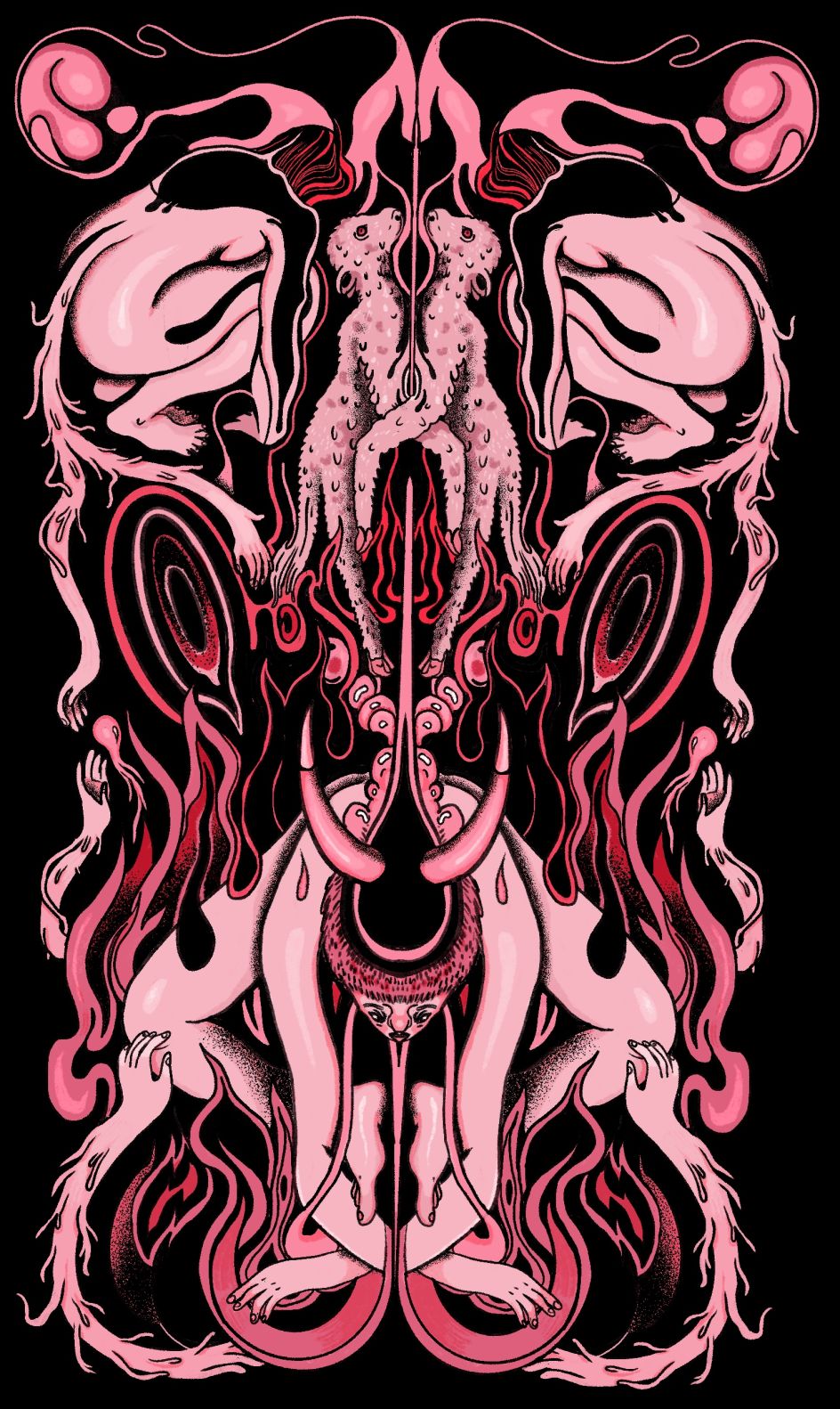 To express her themes, Eva often draws lots of organic shapes such as flowers, tangled roots and vines. "I also like to draw lots of portraiture and anatomy that’s juxtaposed on top of one another. Seeing how one line shares a similar direction with another has always been an exciting puzzle for me to solve in each of my pieces."