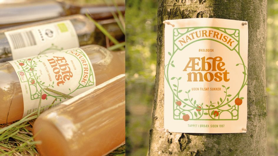 "A truly sustainable mindset is not to exploit nature but working in harmony with one another and balancing the in and output," says Everland of the work. It visualised this mindset in Naturfrisk's new range of soft drinks, where branches and leaves are circling the etiquette.
