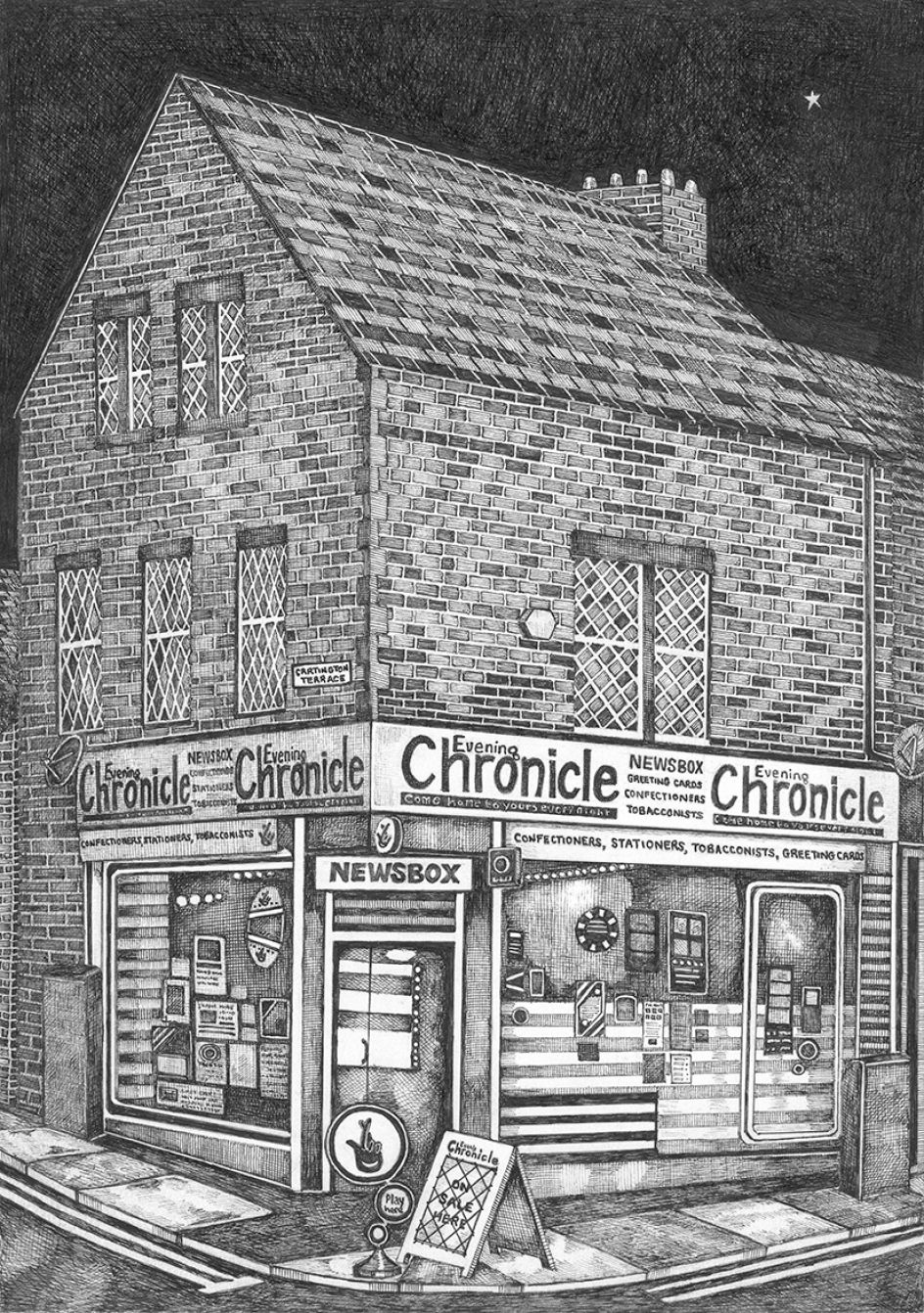 Ben Holland is an illustrator, currently specialising in hand-drawn pen and ink illustrations of offbeat places in Newcastle Upon Tyne.