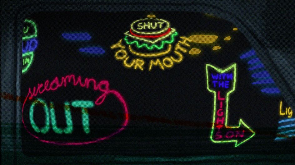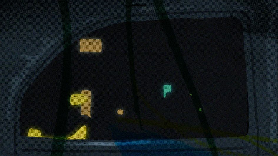 “The client wanted visuals that wouldn't look too 'cartoony', so I decided to go for a slicker look using the iPad to draw, and the method of rotoscoping, using bright neon colours against the dark night which helped in keeping the lights clean and legible,” says Farr.