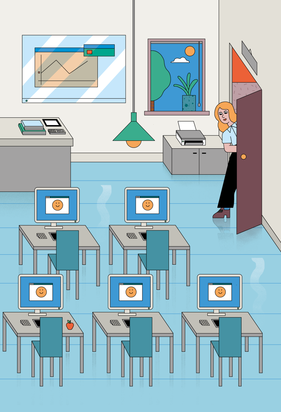 It's not hard to see why his work is so eminently commissionable, especially for editorial work: the characters that populate his images are simply drawn but superbly expressive. He manages to weave bright, bold colours into banal situations and imbues almost everything he does with a wry sense of humour.