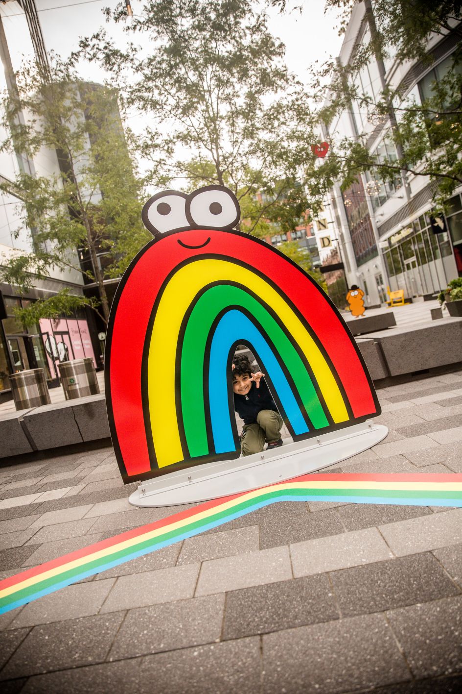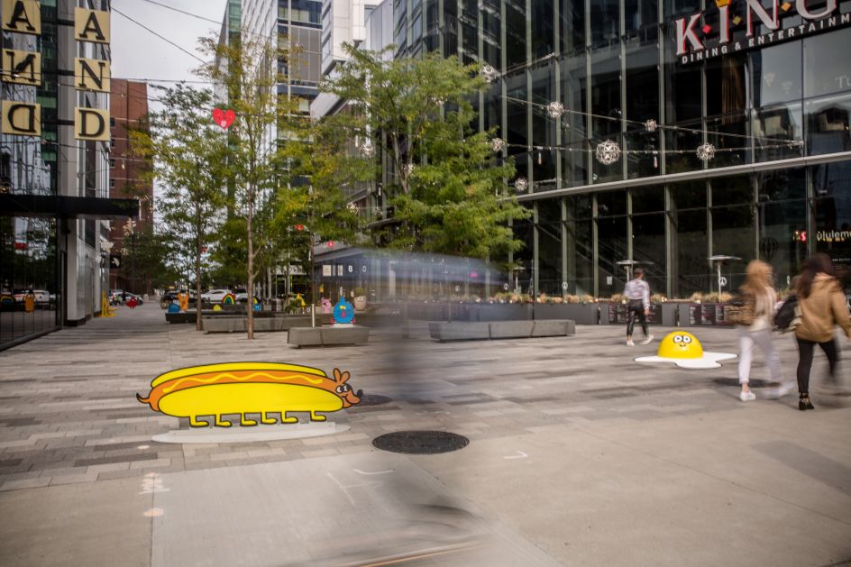 Called 'Looking Out For Each Other', the public art installation features a humorous mix of 2D and 3D characters such as doughnuts, pizza slices, hearts, and a friendly fried egg – all with those famous googly eyes that we know and love. Perching on park benches and standing next to trees, the sculptures hope to encourage social distancing while bringing the local community together through art.