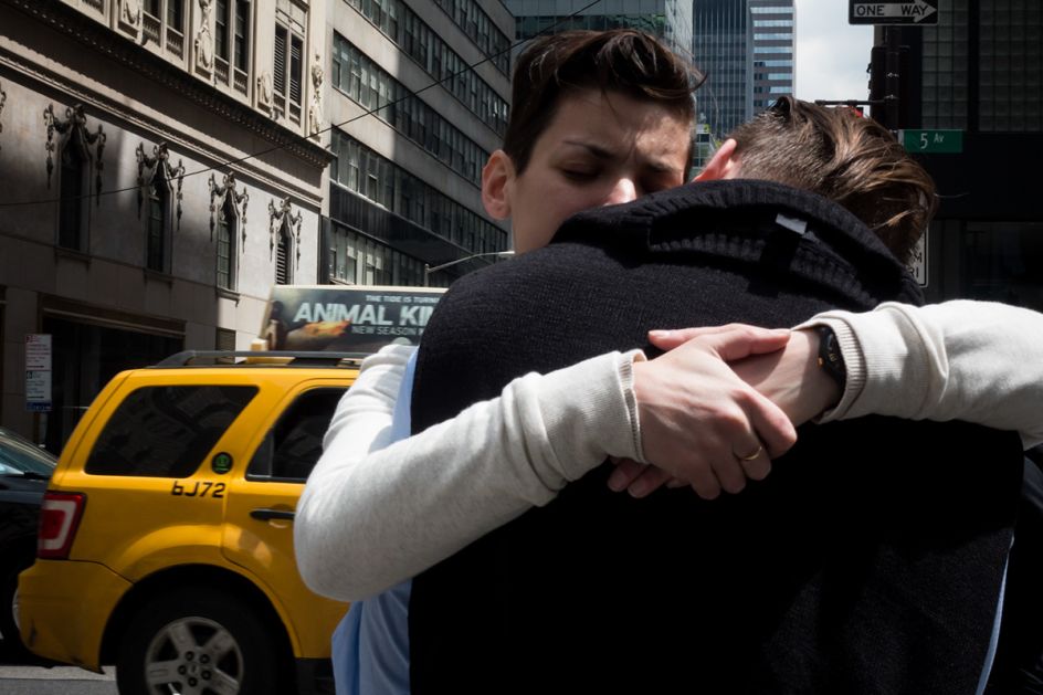 "That’s what I had in mind when photographing the avenue during my lunch breaks. I was always imagining the street as a canvas and trying to include in my photos the interactions and people that would be the red dot, representing a specific moment on Fifth Avenue. Because, to accurately represent a place, you can’t photograph only the ordinary people and scenes, but also capture what contrasts with the normality and thus makes that place special enough to be photographed."