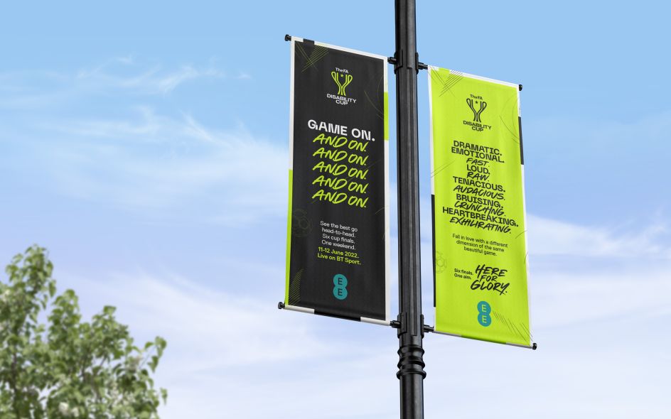Designed to appear across all channels, including kits, tickets, fan scarves, out-of-home advertising and online platforms, the new visuals promote elite-level skill and the competitive spirit, making The Disability Cup a prestigious feat of sporting excellence. It also helps to spread the word of the competition and raise its profile.