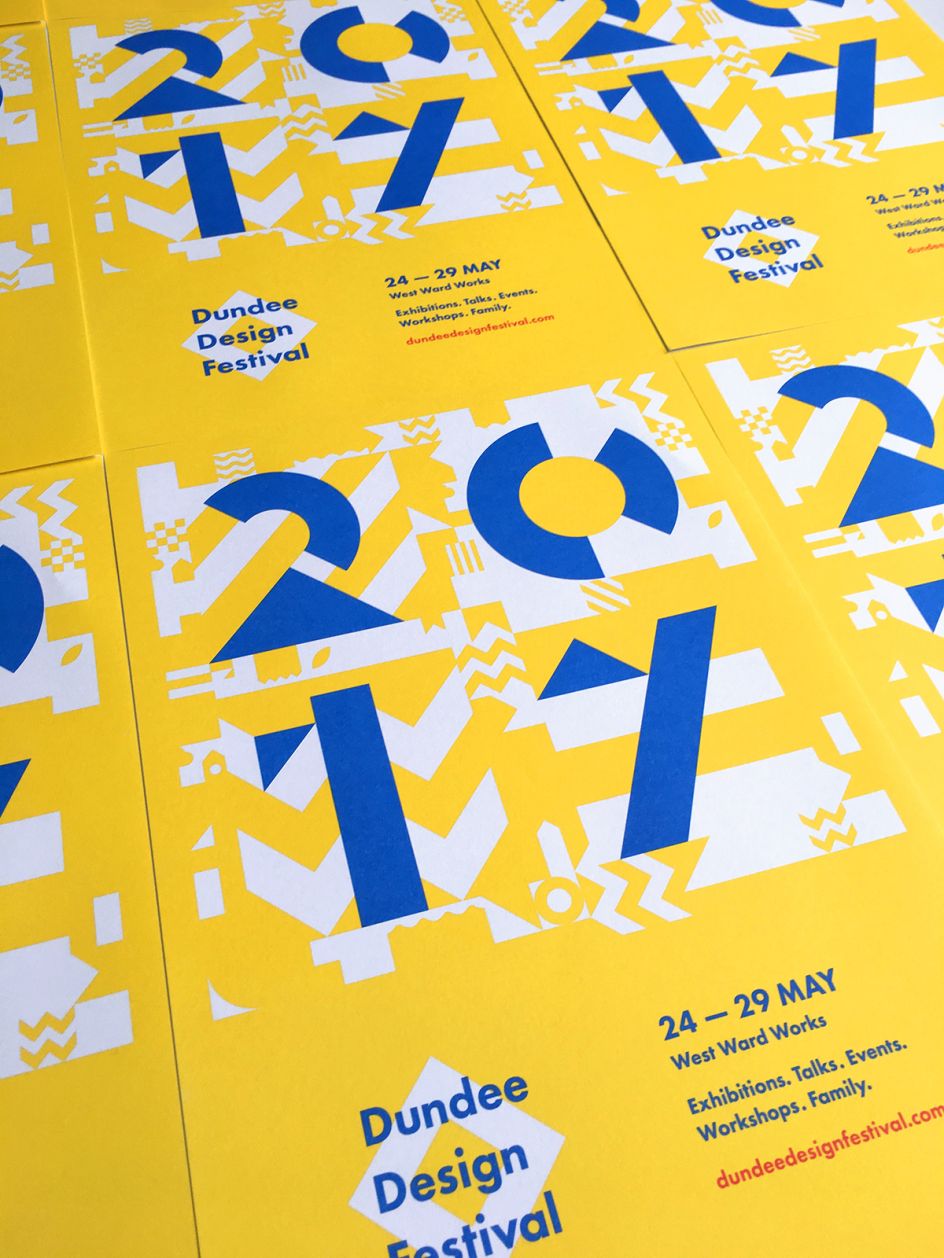 The designs also draw on those for the inaugural Dundee Design Festival in 2016, also created by Fleet Collective. “We looked at how we could evolve this, particularly looking at the pattern that was designed, the idea of using that as the building blocks to construct this years felt like the right direction,” says Bruce. “This approach led to an interesting experiment in typography, looking at how we could build a logo mark that represented this years festival using the fewest shapes possible and still remain legible.”