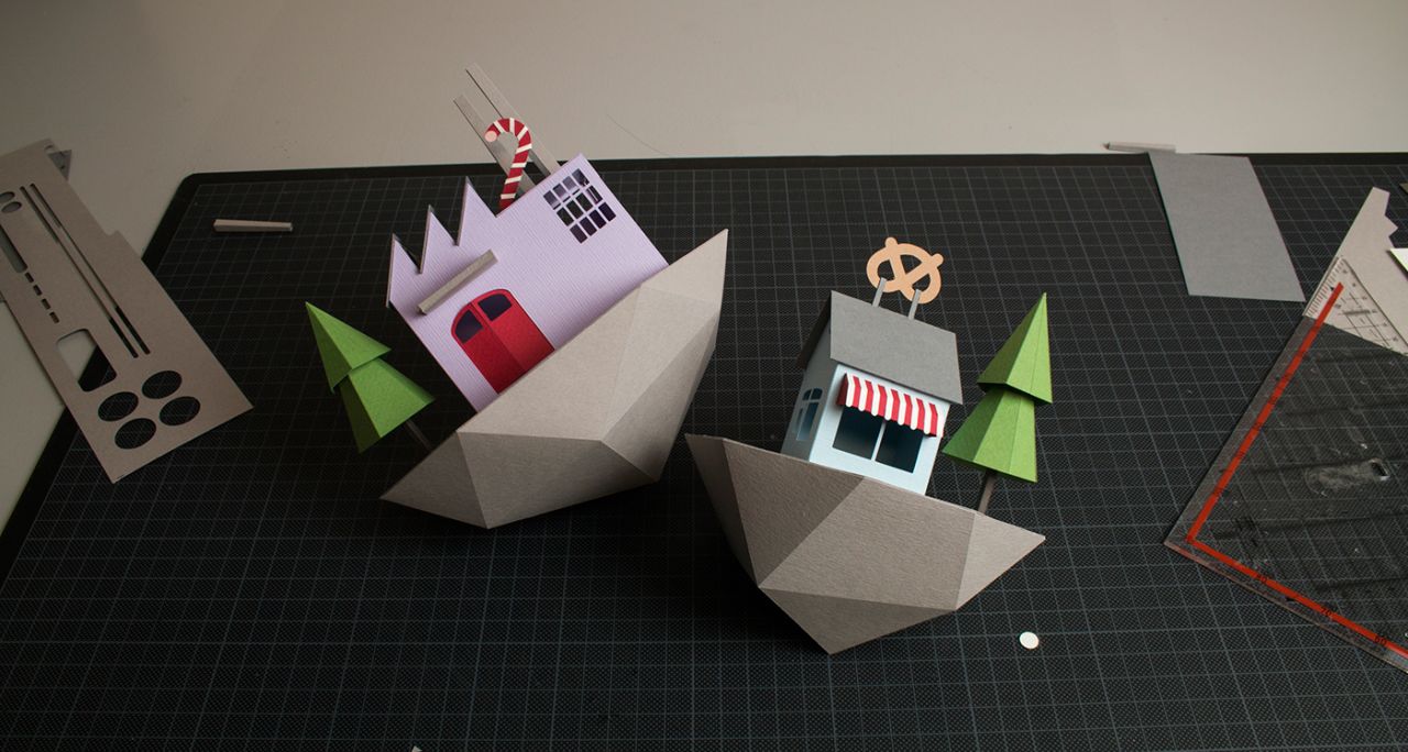 This super cute collection of paper artworks has been intricately handcrafted by the Netherlands-based visual artist, but could be mistaken for being computer generated. She is inspired by her everyday surroundings – "seemingly common household objects, architectural elements and automobiles are fused into magical landscapes".
