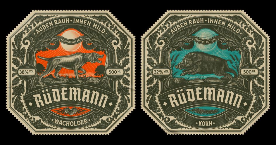 Florian's designs have lent themselves to a lot of packaging jobs of late, such as a label design for traditional German gin brand Rüdemann, and London-based cider makers Hawkes.