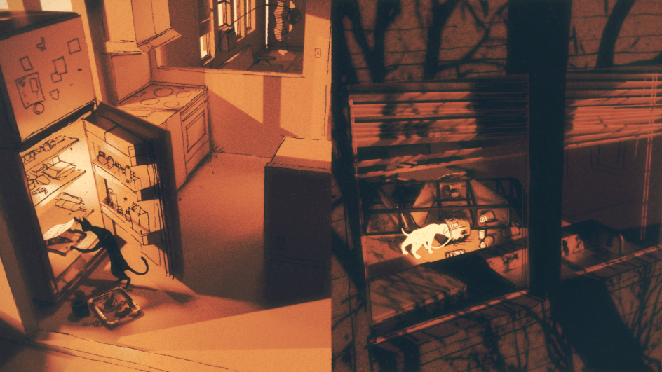 The music video was originally written as a 2D animated, hand-drawn film with the help of 3D backgrounds. "As for most productions, I imagined I would work with character animators," Fons continues. "But in the storyboarding and look development stage I got very interested in the idea of using multiple camera angles. It just made sense with the presence of technology in these homes: security, pet and nanny cams in addition to tablets and computers. I liked the thought of all these camera streams continuing without purpose until the battery runs out."