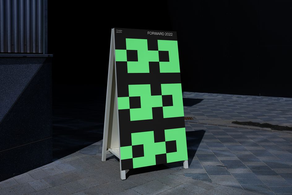 Take the symbol at the heart of the Forward branding: a giant letter F which appears to be made out of huge pixels. This not only shares similar design traits to Tatari, but its subtly distorted form taps into the theme of the events. Thanks to a section of the F being missing from where the arm usually branches out, the letter resembles an arrow pointing, suitably, forwards.