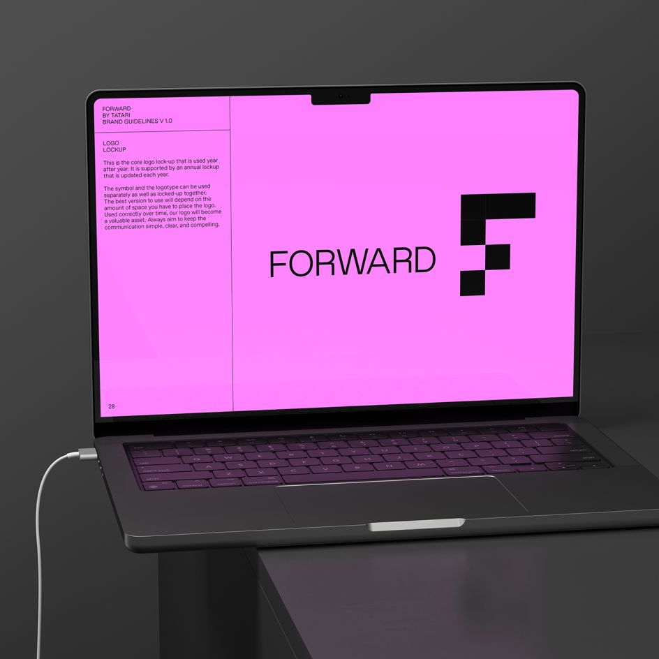 To maintain a connection between Tatari and the Forward event, A LINE used the company's existing design system as a springboard. From here, they modified the existing blocky, black and white Tatari logo and adapted it to fit the Forward identity. The result is a natural evolution which maintains a satisfying consistency with its parent company.