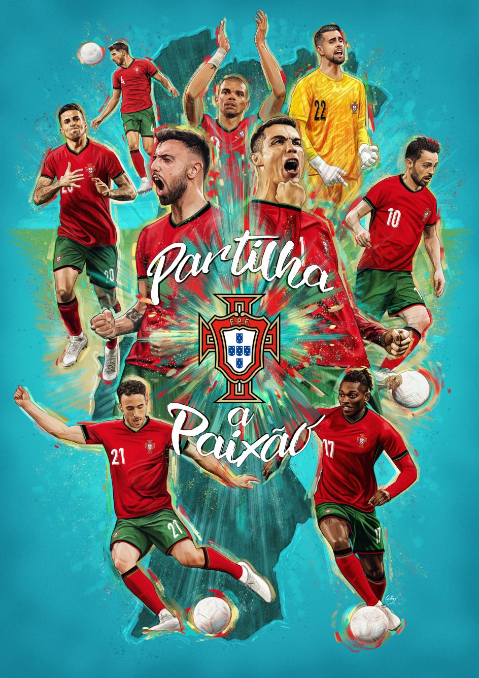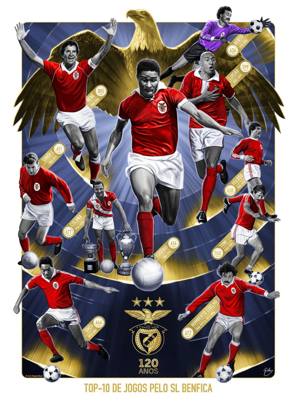 Gilbey has been hoping to do more in the sports sector in addition to movie-related commissions. Recently, he landed a new project for Portuguese football club Benfica as it celebrates its 120th anniversary: creating a licensed print featuring ten legendary players who played the most games for the club during their careers.