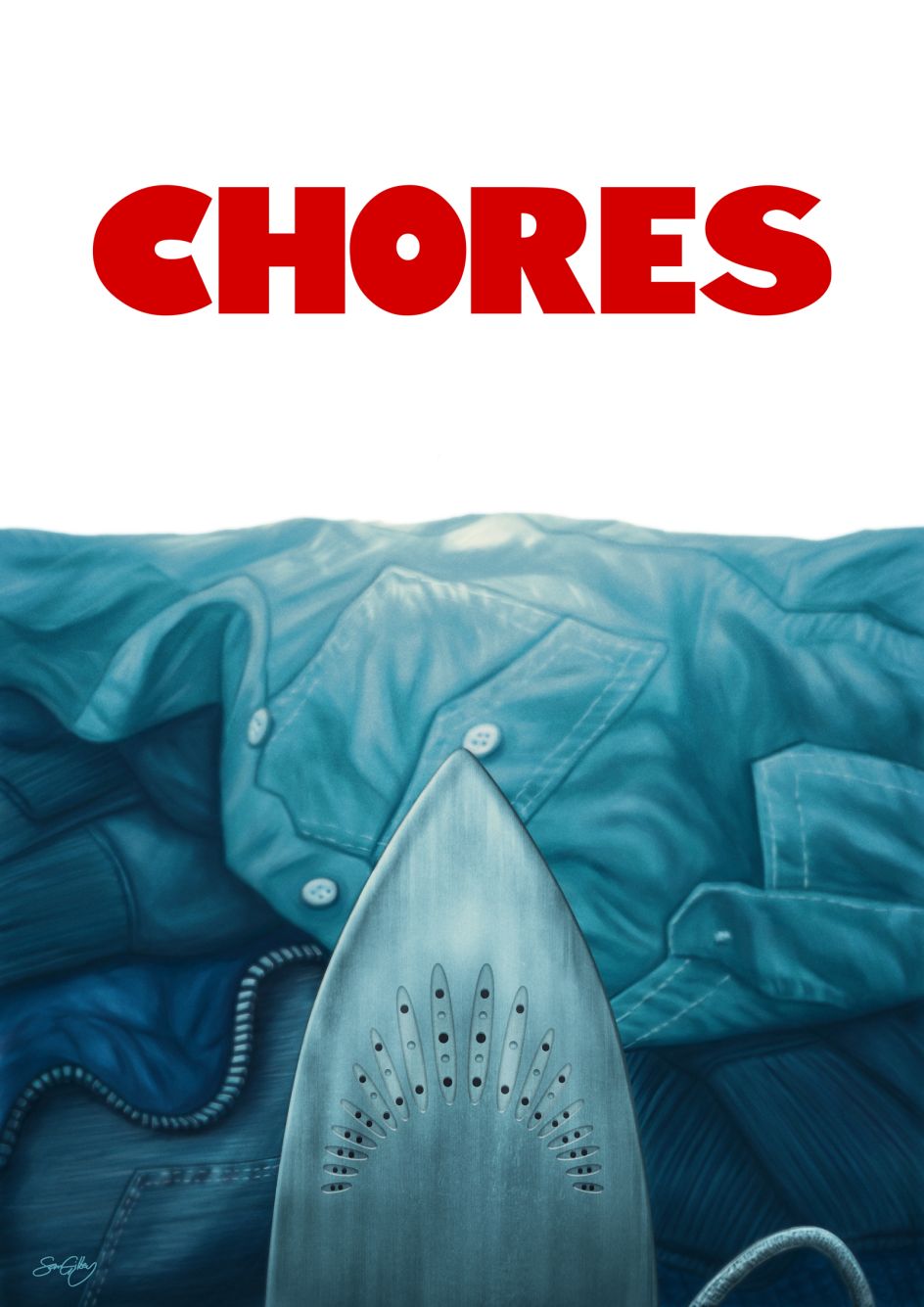 He notes that, with artwork, that process can take years and never stops since you're always evolving and absorbing new techniques and styles. "Occasionally in my work, both personal and commercial, I've done parody pieces and homages to a particular painting or genre style, so whilst my work is probably recognisable, I also enjoy leaning into different genres and eras as a brief or idea demands," Gilbey adds, referencing his Bojack Horseman print in the style of David Hockney's Portrait of an Artist (Pool with Two Figures).