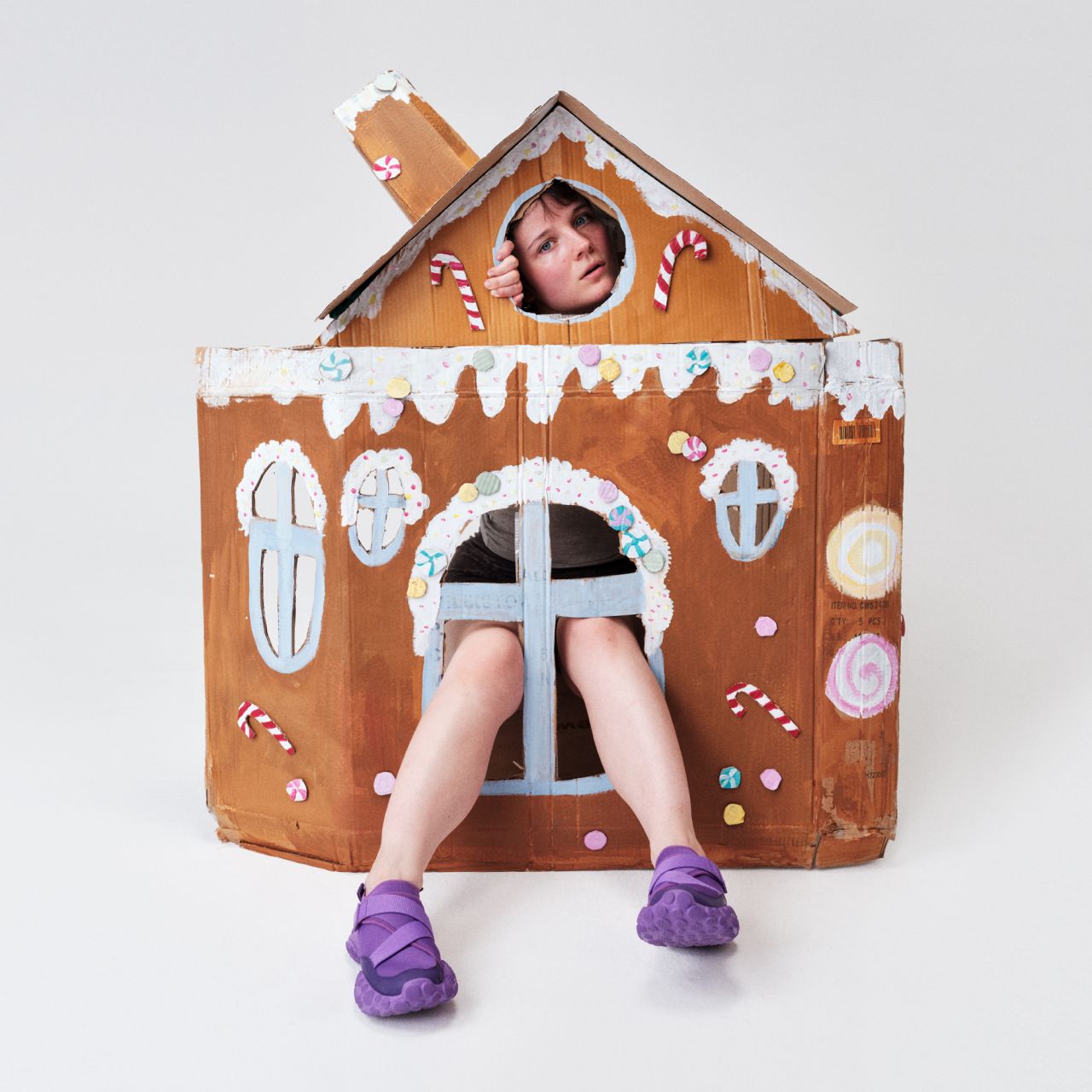 Across her portfolio, there is a medley of media, from digital print-outs of her face to window displays and large-scale cardboard sculptures that she can sit in. A standout piece is a collaboration she did with Ed Curtis, a London-based artist and designer known for hand-painted 'wearable art', that often features bold smiley faces and lavish colour palettes. As a long admirer of his work, Maya was excited by this opportunity and dove right into the meeting to develop the concept.