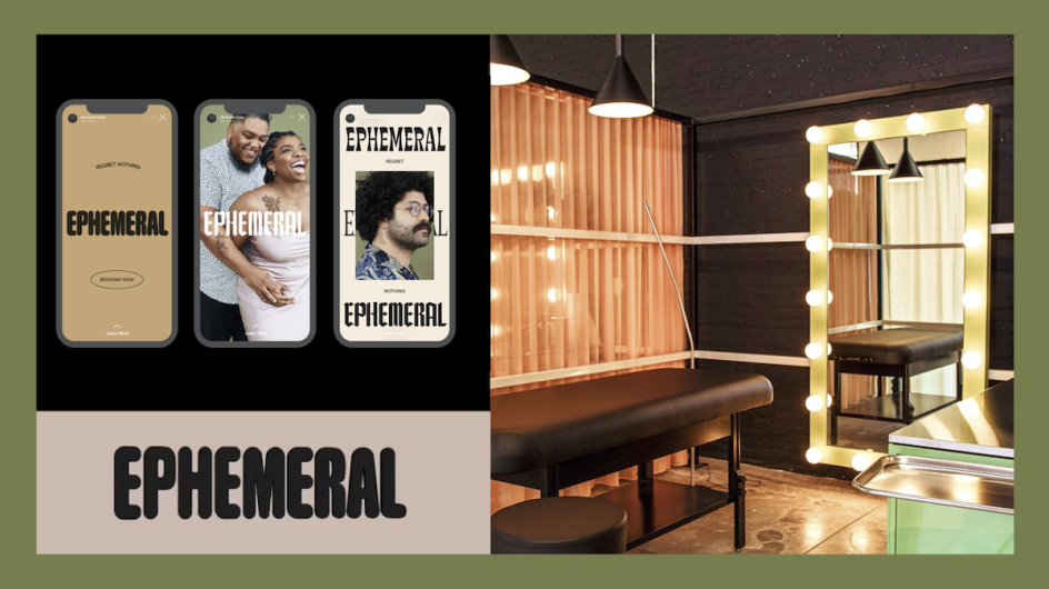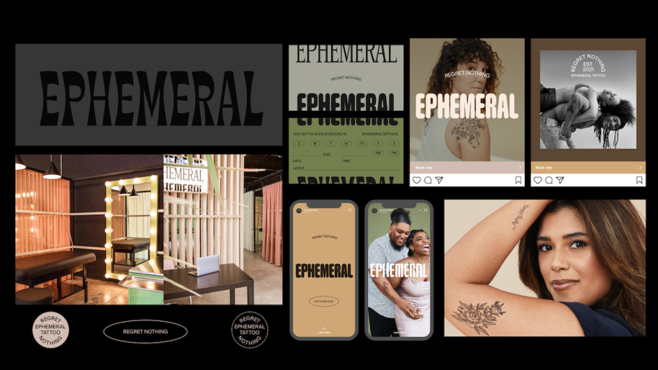 Ephemeral says its initial approach to the graphic design was to aim to create a logo that was "something between traditional tattoo shop vibes (eclectic and heritage driven); high-end salon structure (without being inaccessible); playful to underline their warmth; and clinical to demonstrate their commitment to science and transparency."