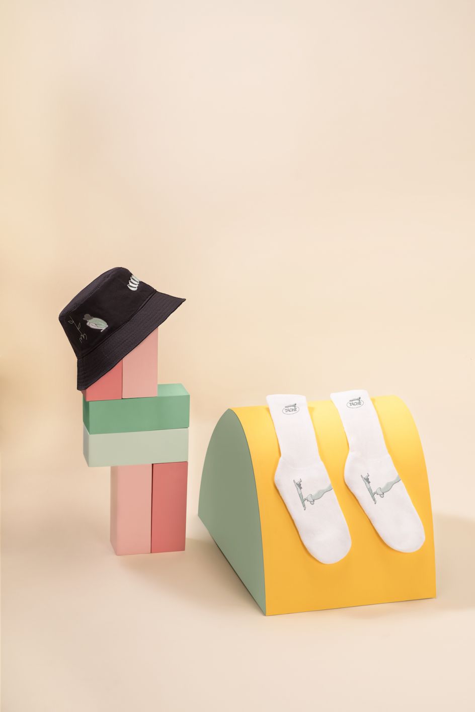 Futura is also helping create Táche merch, including bucket hats and socks, as well as social graphics.