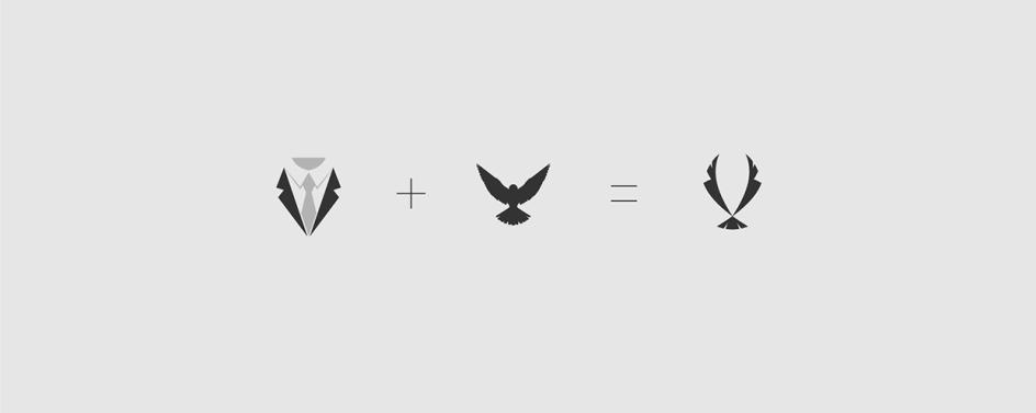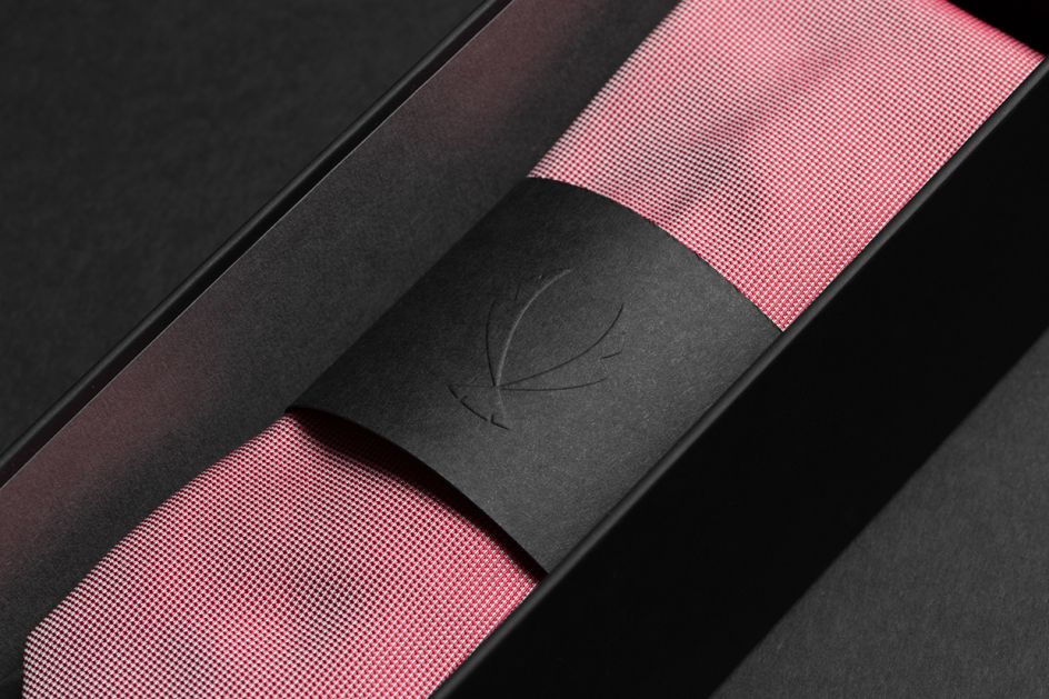 "My aim was to capture the brand’s essence in a simple, elegant yet instantly recognisable way. I created a symbol of a jacket’s collar and lapels that resonates with bespoke tailoring but also emerges into a flying dove. The colour palette is dominated by dove grey, complemented with elegant black."