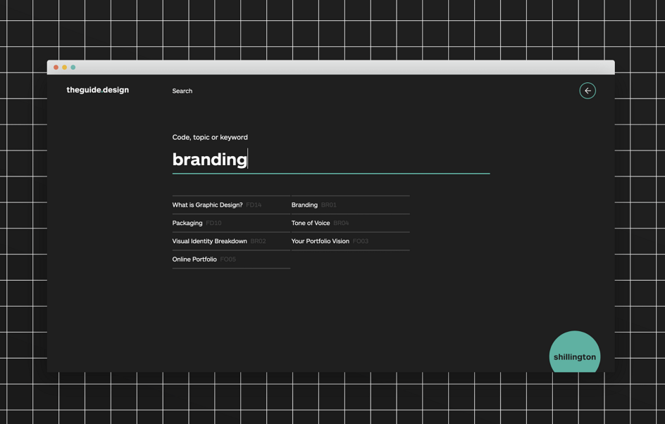 The key to digital design is making it easy to find the right information quickly, and here's a great example. The Guide, created by Anthony Wood, Shanti Sparrow and Emily Comfort, is an online platform that showcases supporting material for the Shillington Graphic Design course.