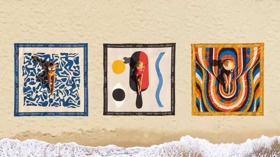 Karan Singh, David Vanadia, and Quentin Monge have collaborated with ice cream brand Magnum to create limited-edition beach towels that encourage us to practice safe social distancing on holiday or in our local park.