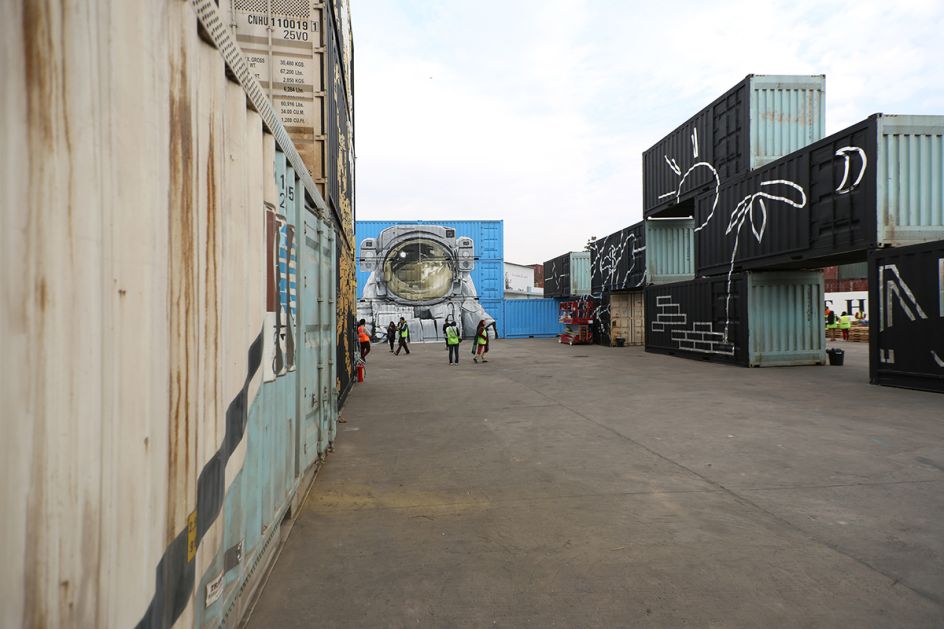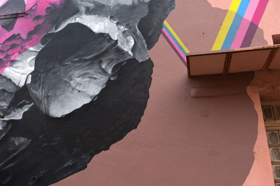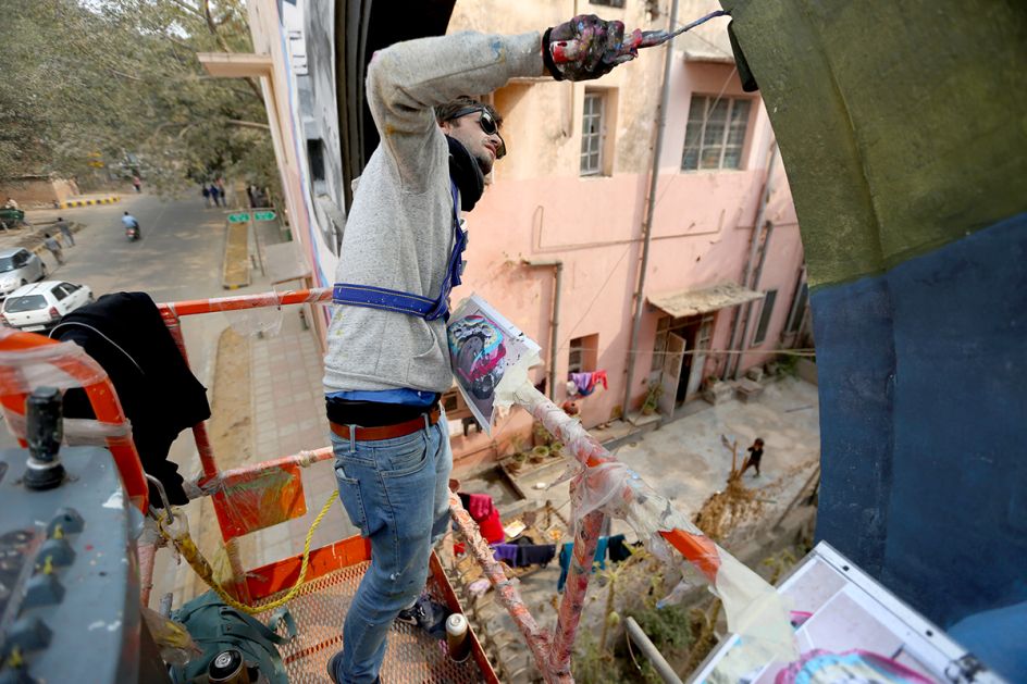 The first was realised in the Lodhi Colony in south-central New Delhi, while the second was painted on six train containers of the "WIP" exhibition, at the ICD deposit of Tughlakabad, further south. Lodhi Colony is one of the oldest colonies established during the British period and was originally built in 1940 to house the employees of the government.