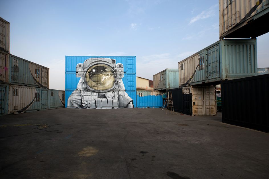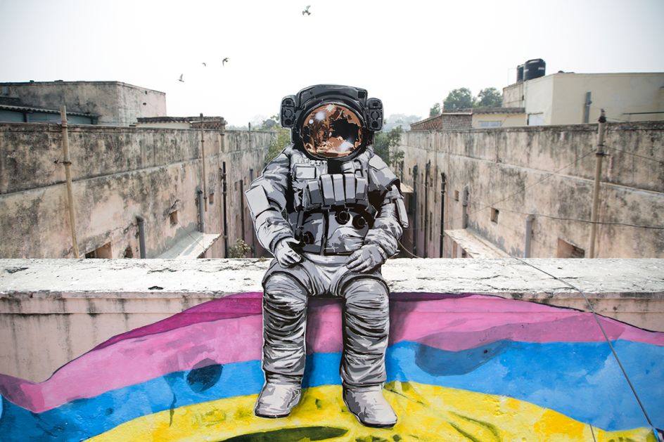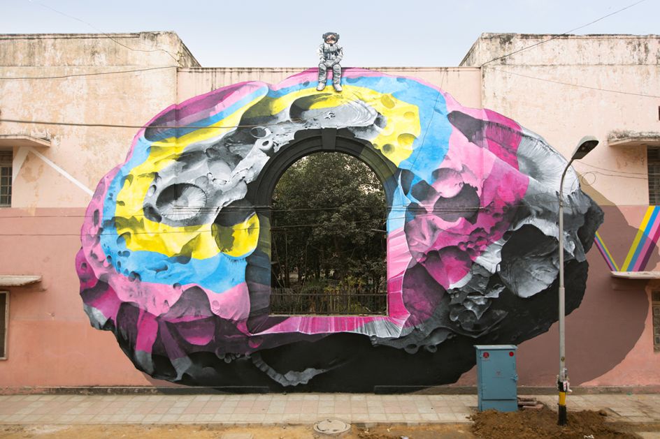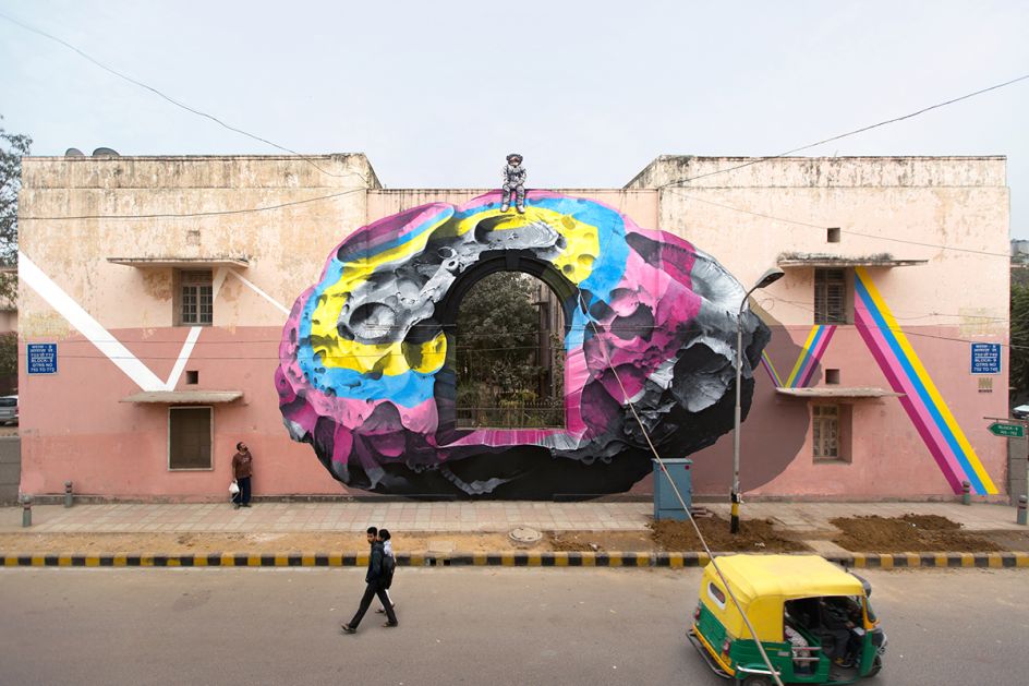 This series of intergalactic art installations located in New Delhi, India, is the handiwork of Swiss street art duo, Nevercrew. They've been working together since 1996, and these out-of-this-world murals are their latest works, which sit a few kilometres apart.
