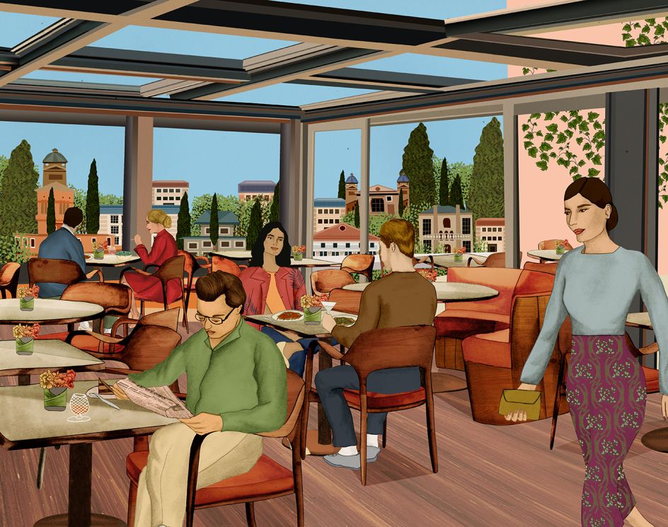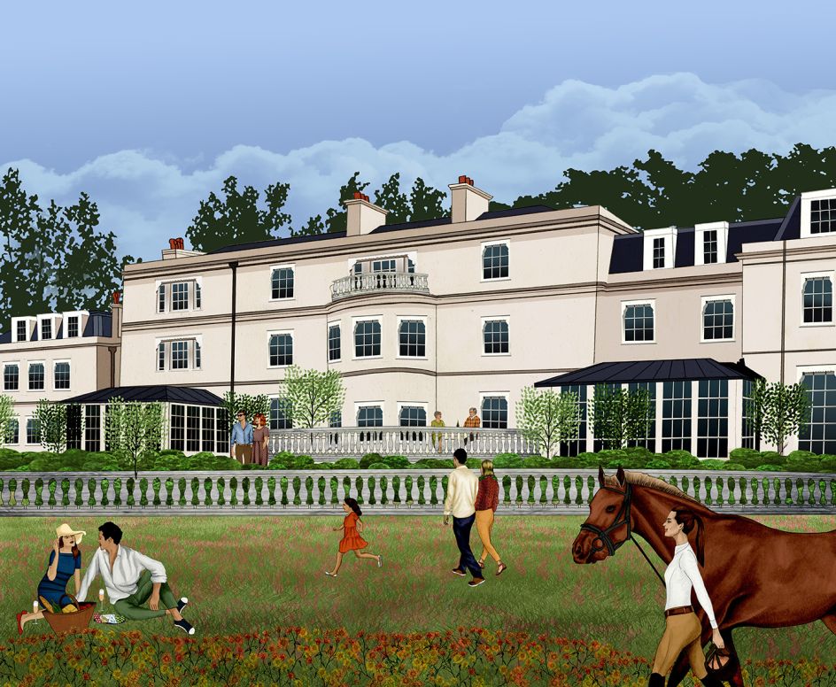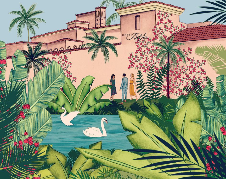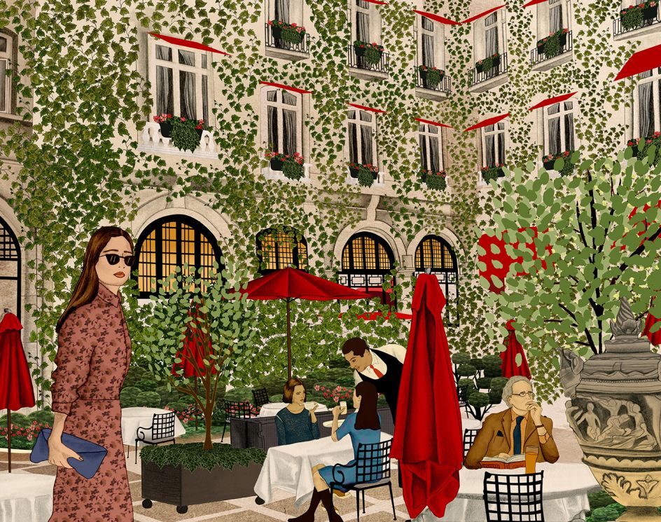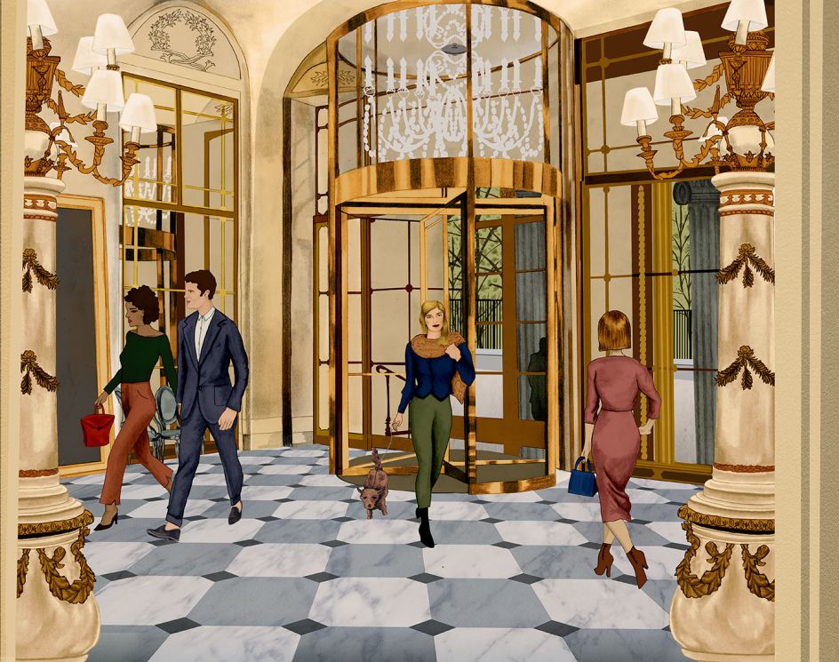 Gigi explains: "The brief was to encapsulate the Dorchester Collection into one illustration that best represents its unique space and atmosphere. To demonstrate the beautifully considered decor, the history of architecture and elegance of the guests.