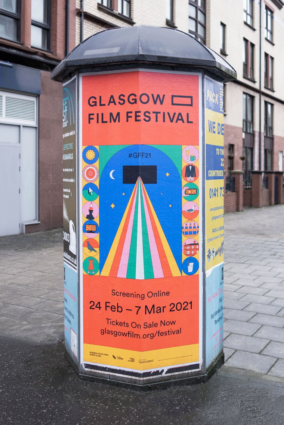 "The outcome feels like a true reflection of our vibrant and eclectic home city, and it was a great opportunity to work on the identity of a festival that we all know and love," says David Freer, director of O Street. "One of the challenges of the project for both the GFF team and ourselves has been adapting to the changing Covid landscape in the run-up to the festival, but our flexible system proved up to the task, moving across print and posters to being mostly digital and animated content, and my favourite addition – a custom festival selfie filter for Instagram!"