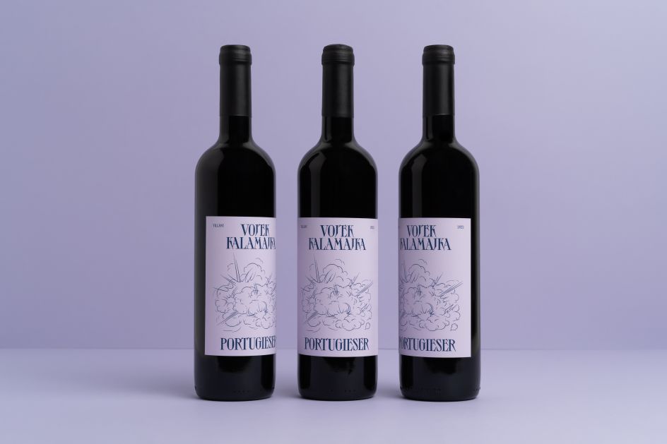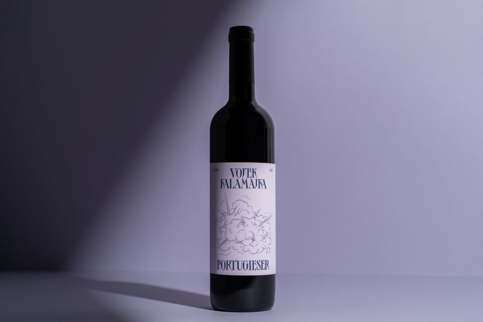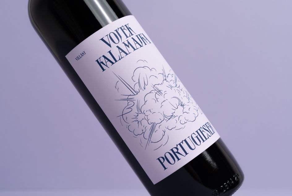 She continues: "The fine lines of the illustration balance the strong typography with extra tight line spacing. Reflecting on this dynamic contrast, the light pastel, lilac label, complemented with navy blue lettering, creates an invitation to explore the fresh, fruity, and bold notes of Vojtek's Kalamajka Portugieser."