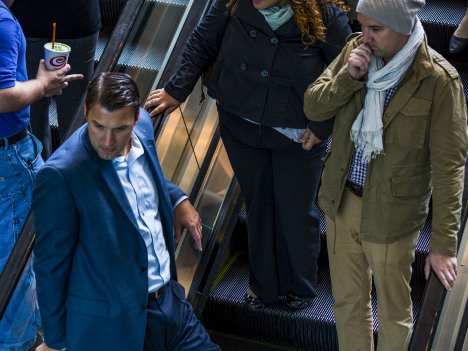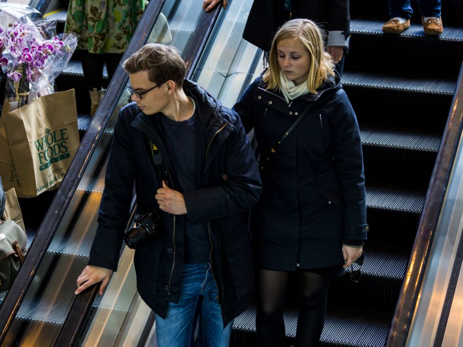 David explains: "This project was special for me because I discovered the scene and vantage point while on my way to do another assignment, and once I began to photograph I was struck by the variety of oncoming visual stories that came into frame as people descended on the escalator down to a store below."