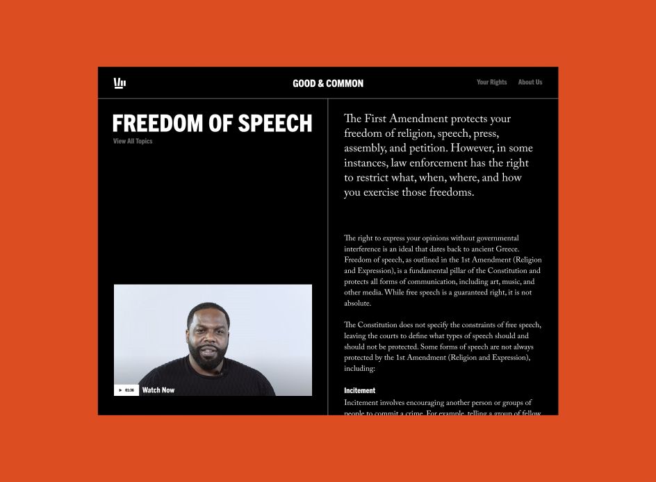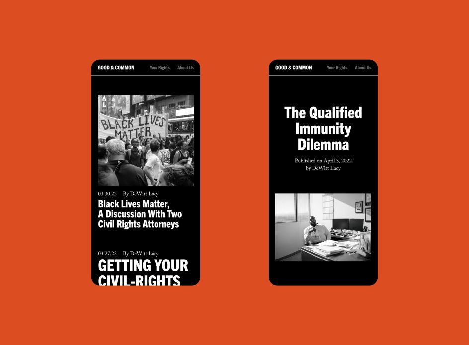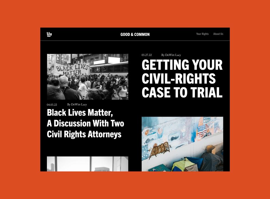 The intricacies of a person's civil rights can be challenging to work out if you are not well-versed in the law. To demystify your individual rights, civil rights lawyer DeWitt Lacy has collaborated with design studio Landscape to create an online educational platform, Good & Common.