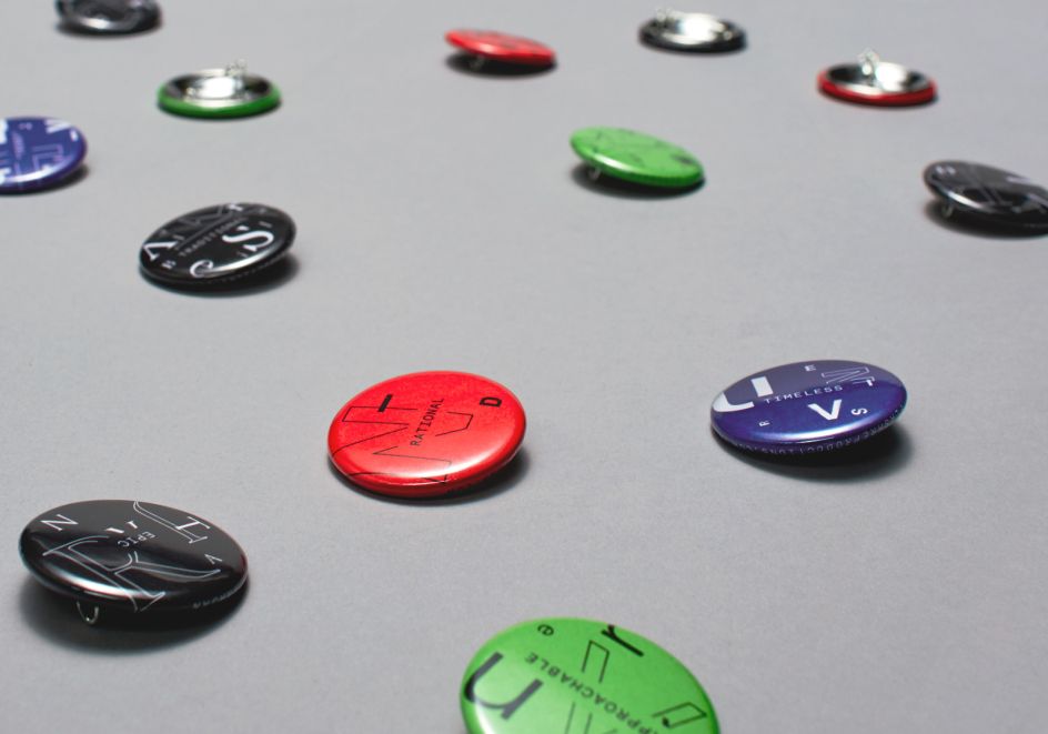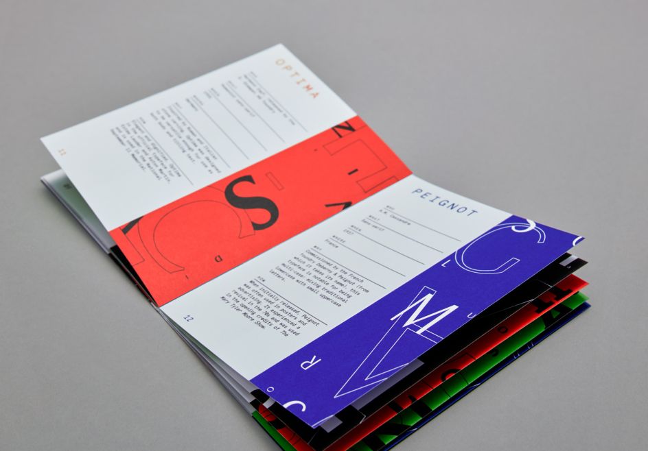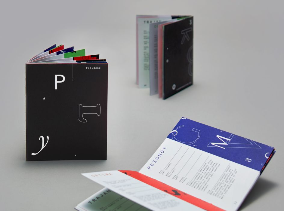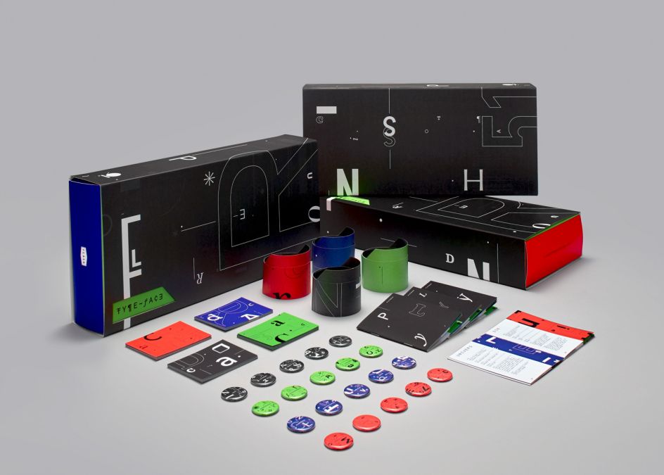 The game includes a custom box, rules booklet, hints for identifying 20 typefaces, 20 pins that highlight the personality of the typefaces, headbands and the specially printed identity cards.