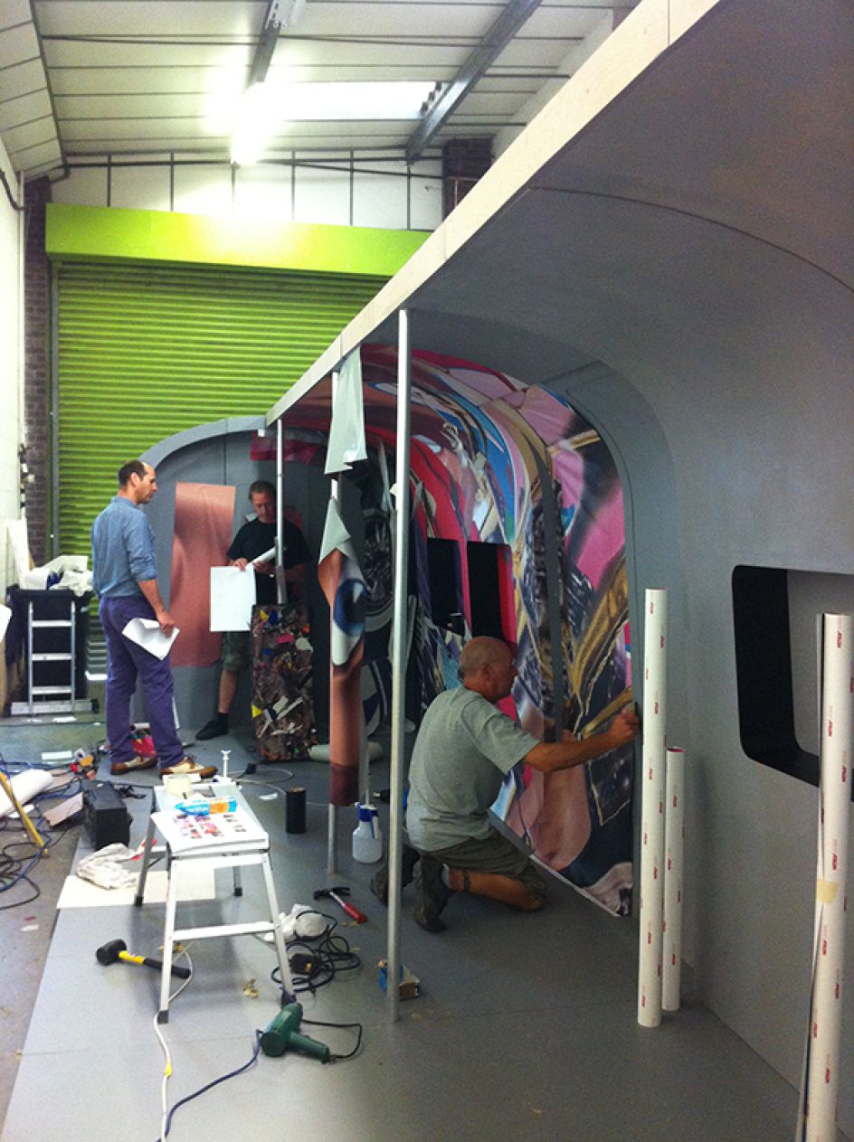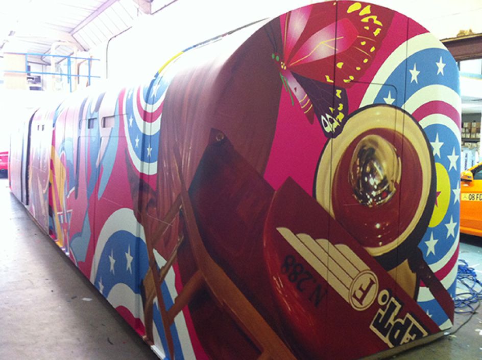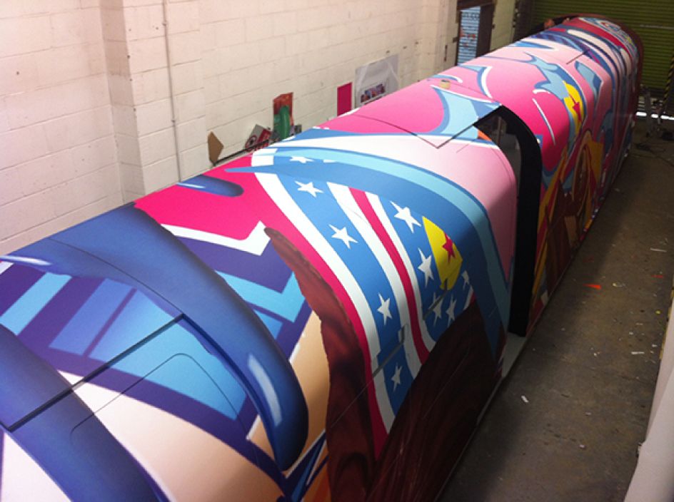 One particular artwork to stand out is this life-size tube train carriage, which is covered in Andy's usual bright and bold colours, superheroes, cartoon characters and London street scenes to create a mixture of layered explosions.