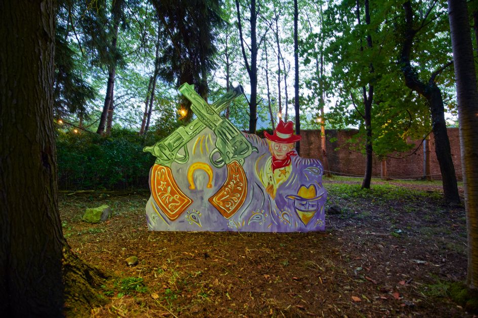Green Man also commissioned Kathryn Ashill to develop a unique artwork, and she came up with something quite unusual. Festival-goers could wander down to the Pine Woods, behind the Walled Garden, to explore the narrative of a fake cowboy town inside 'Gunsmoke City'.