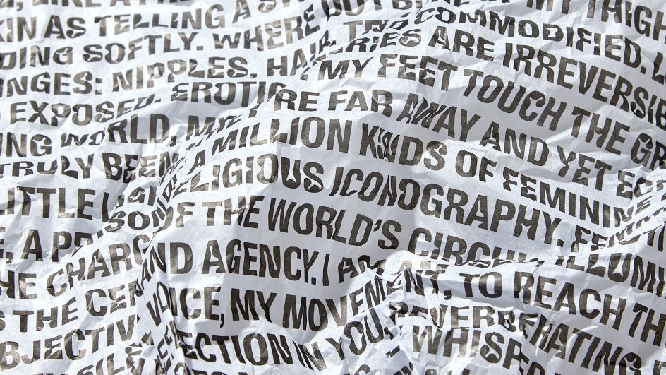 "The text is like a journey," Fedorova says. "It's about letting go and diving in to emerge on the other side. The fragments are experiences, thoughts, cultural reflections on existing in a femme body, on the pain, pleasure, knowledge and self-exploration. I love that the piece I wrote was then incorporated in the material culture surrounding the brand – it's printed on packaging tissue paper and swing tags. I love that the text gets a new life in the real world and that people would be able to choose how to engage with it."
