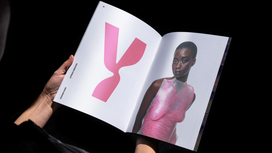 "We drew a wordmark based on the Suisse Int'l Condensed typeface and consequently a custom typeface informed by ever-changing body form, and the materials Sinéad works with daily, such as silicone casting. The alternate characters in the face are very organic, and always fluctuating, celebrating bodies of all shapes and sizes. We worked together with cutting-edge foundry Swiss Typefaces to help refine the typestyle, and the technicalities, creating bespoke font Suisse Every Body. SwissTypefaces also coded a cut which auto-selected glyphs at random, so type statements are always different."