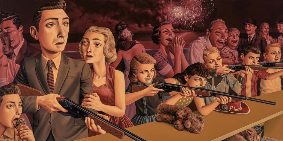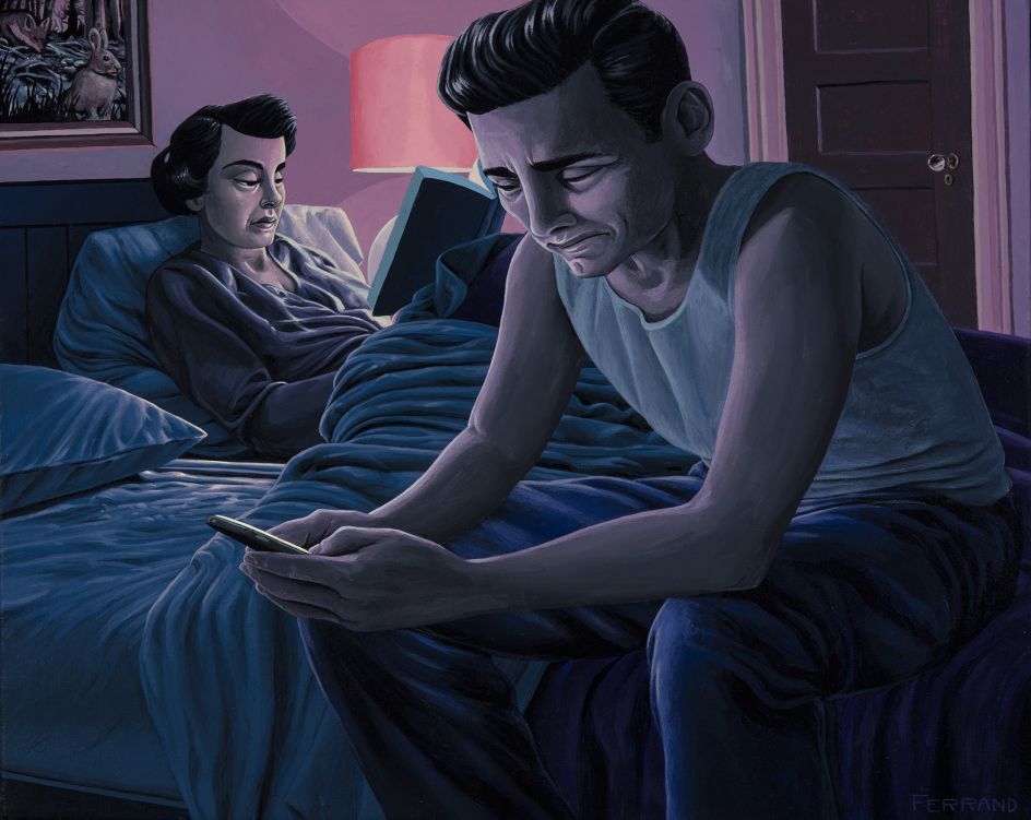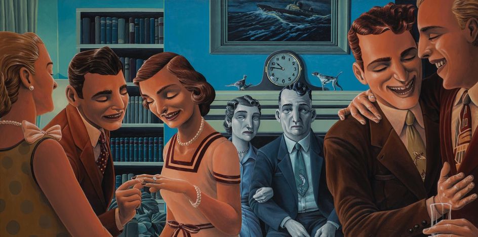 Each of the American artist's paintings invites us into a world of stories and beautifully portrayed details. We come to know the people who inhabit his works by the clothes they wear, the paintings they hang on their walls, the books they read and the smartphones they carry. Their sense of wariness is further amplified by the stylised palettes Gregory chooses for each painting.