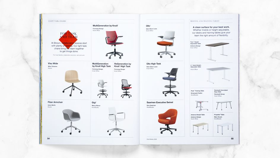 The result is a delightful fusion of high-end editorial design, strategic branding insight and technical detail, striking a balance between inspiration and information to highlight Knoll's wide range of design-focused furniture.